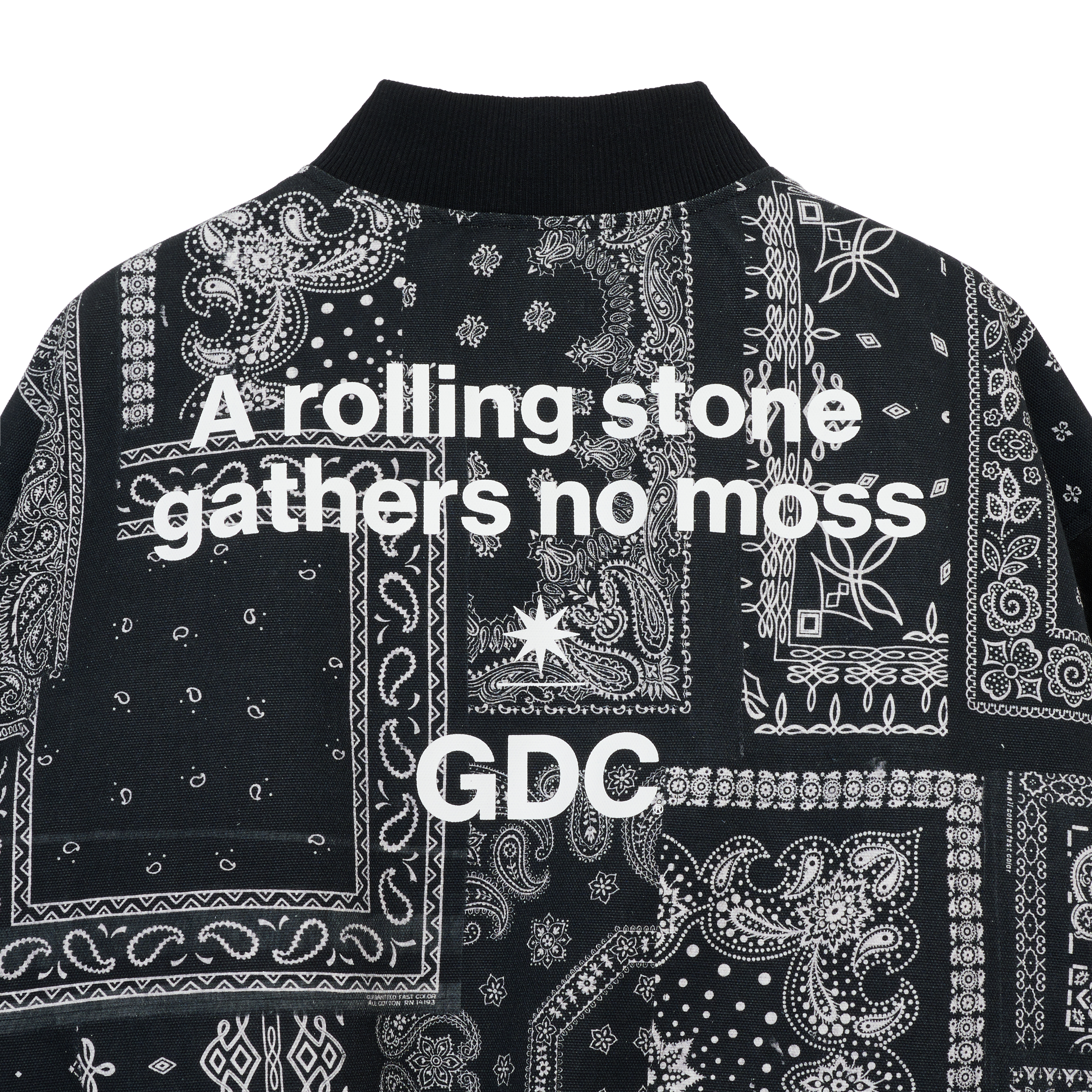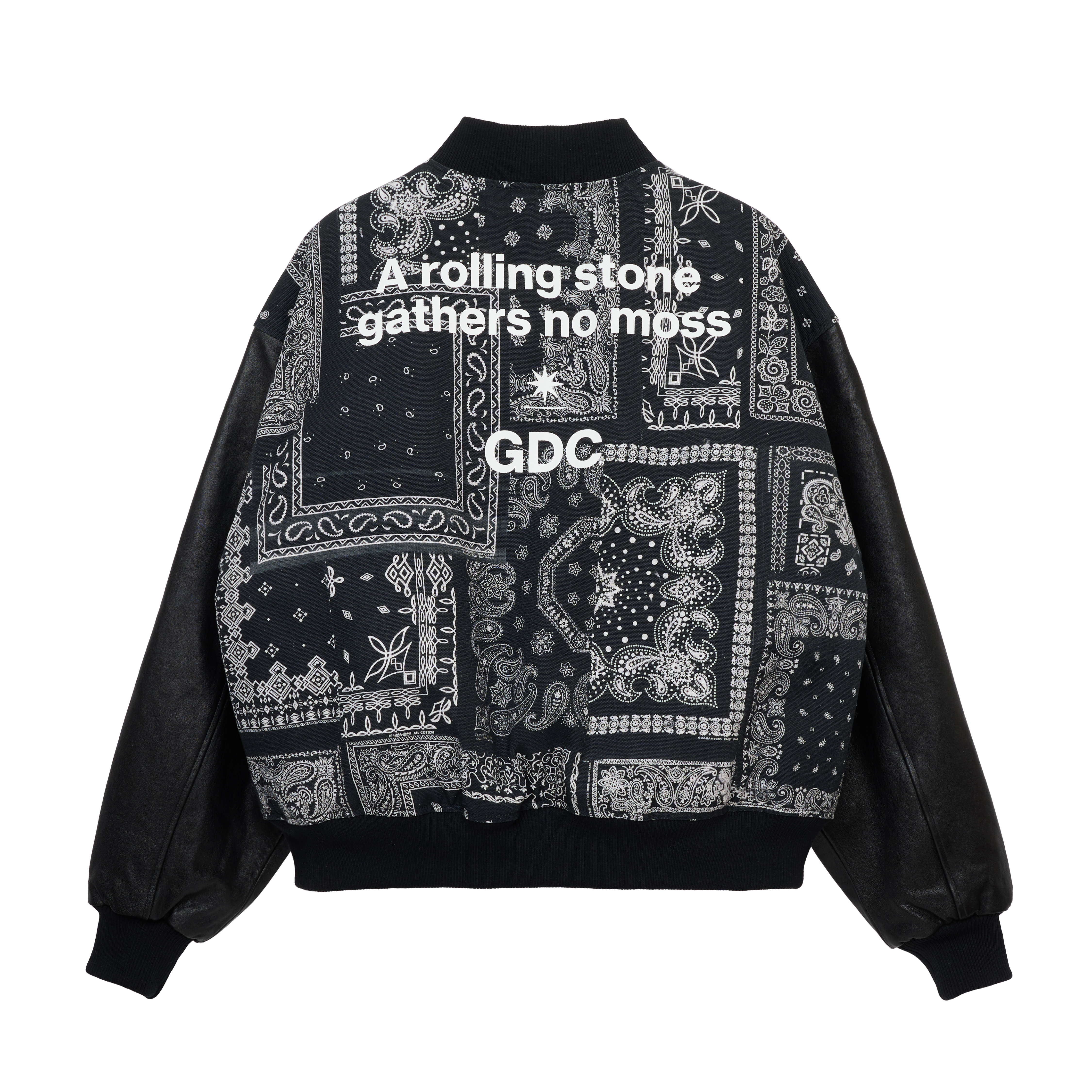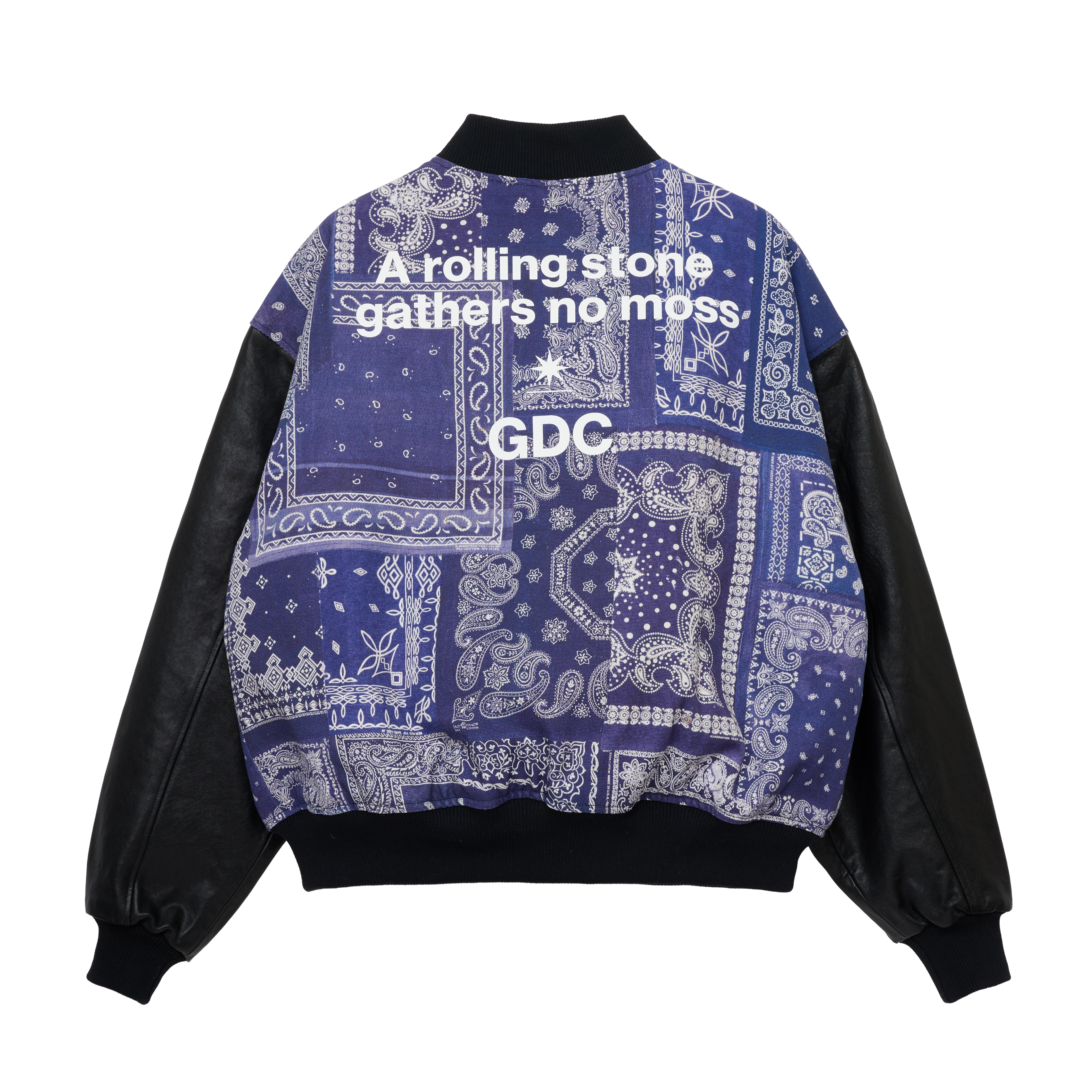 バンダナ柄を大胆に取り入れたGDCならではのスタジャンを筆頭に、フロントに〈GDC〉ロゴをプリントしたTシャツ、ゆったりとしたシルエットのフーディ、ベレー帽、キューバシャツ、ビッグチノパンツ、さらにOUTDOOR PRODUCTSとのトリプルコラボレーションによるバッグを含む、日常使いに最適なカジュアルウェア、ヘッドウェア全9型をラインナップ。