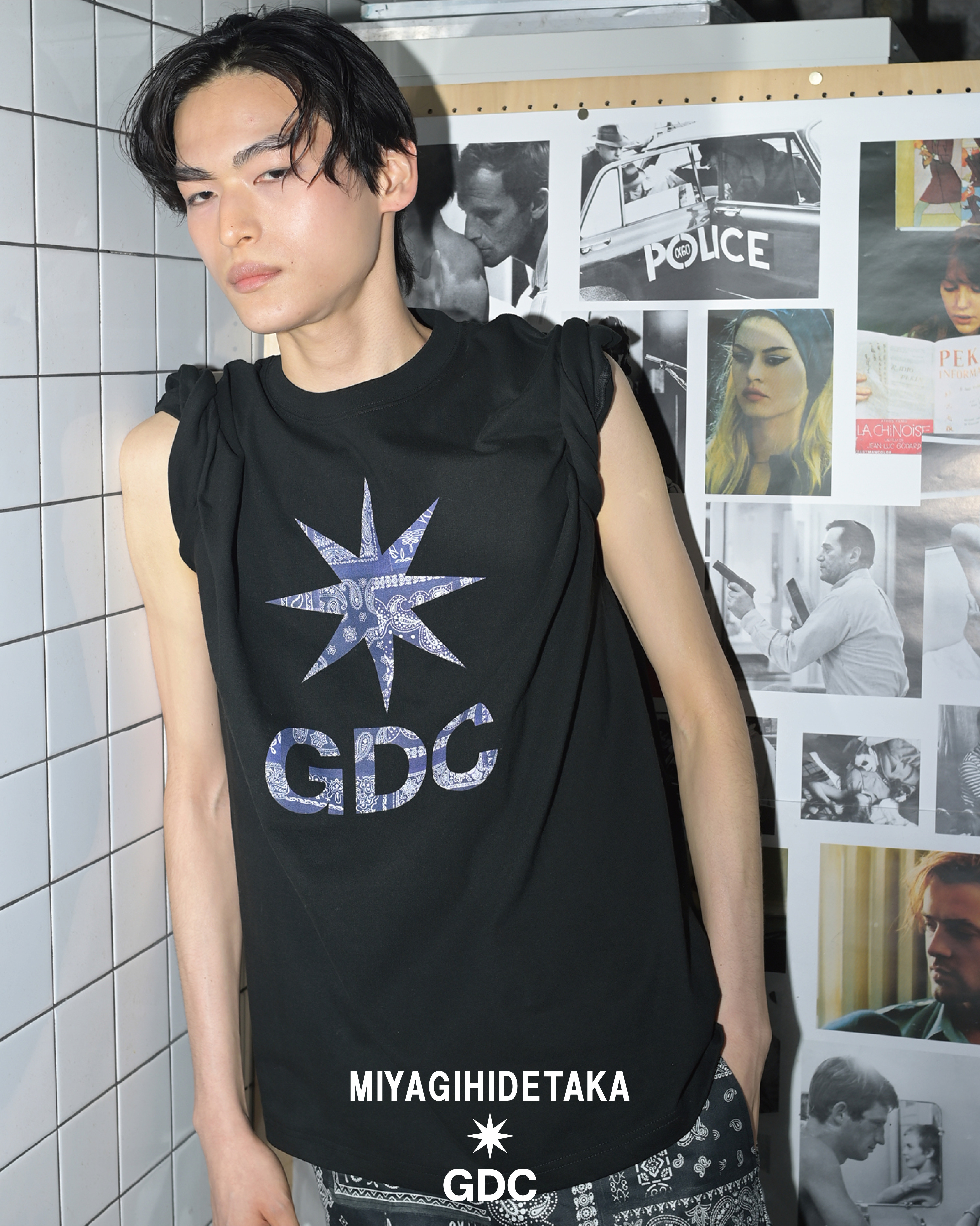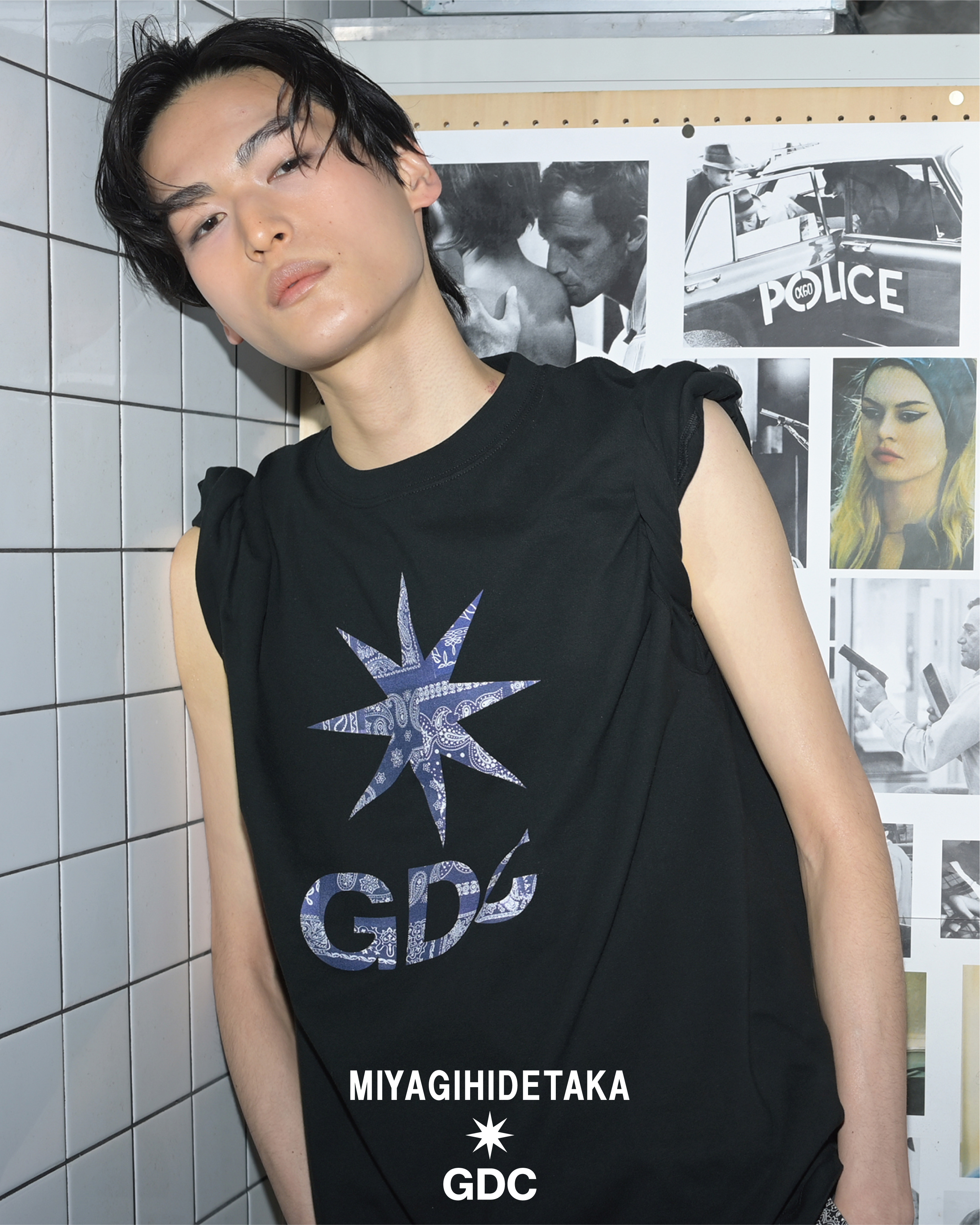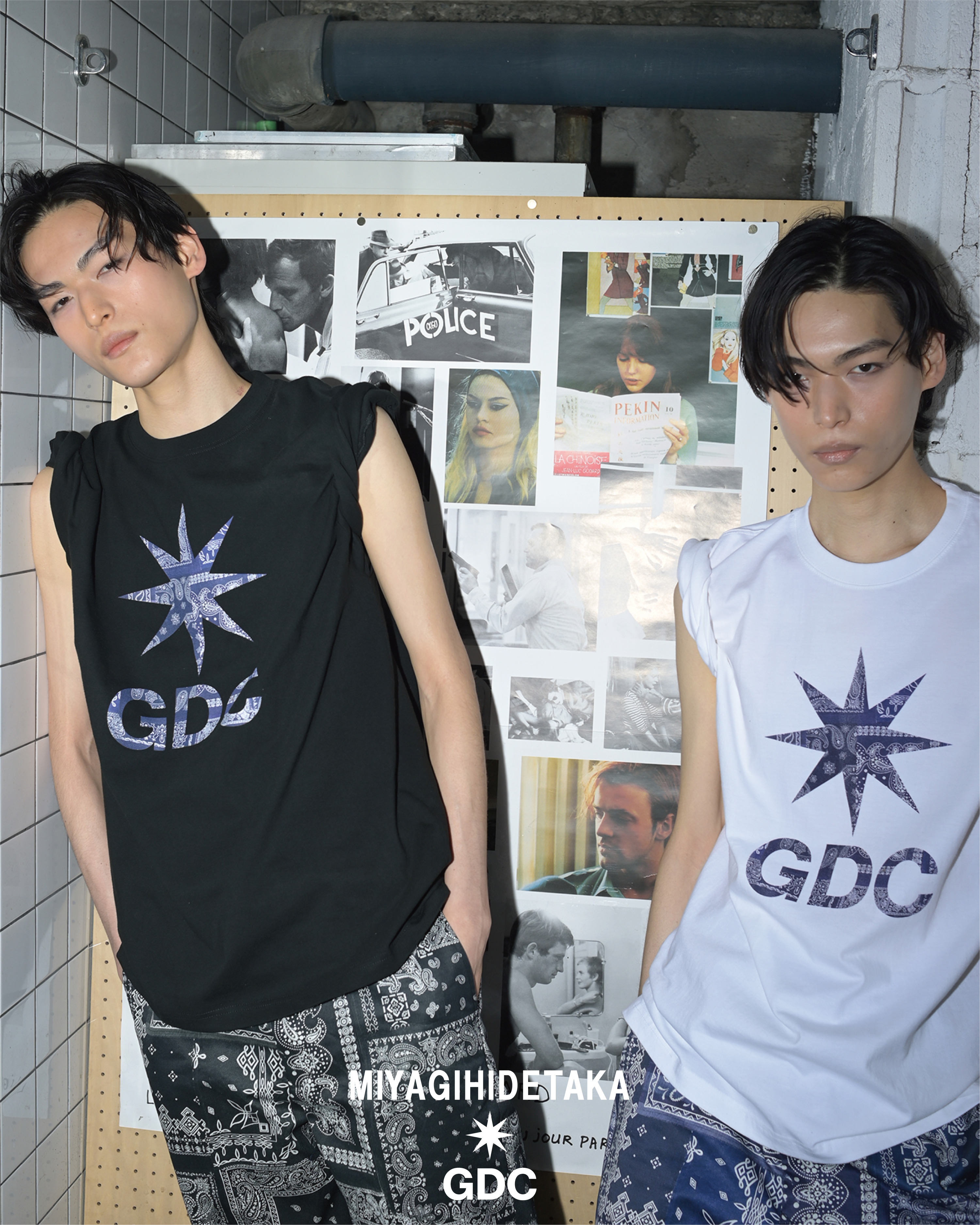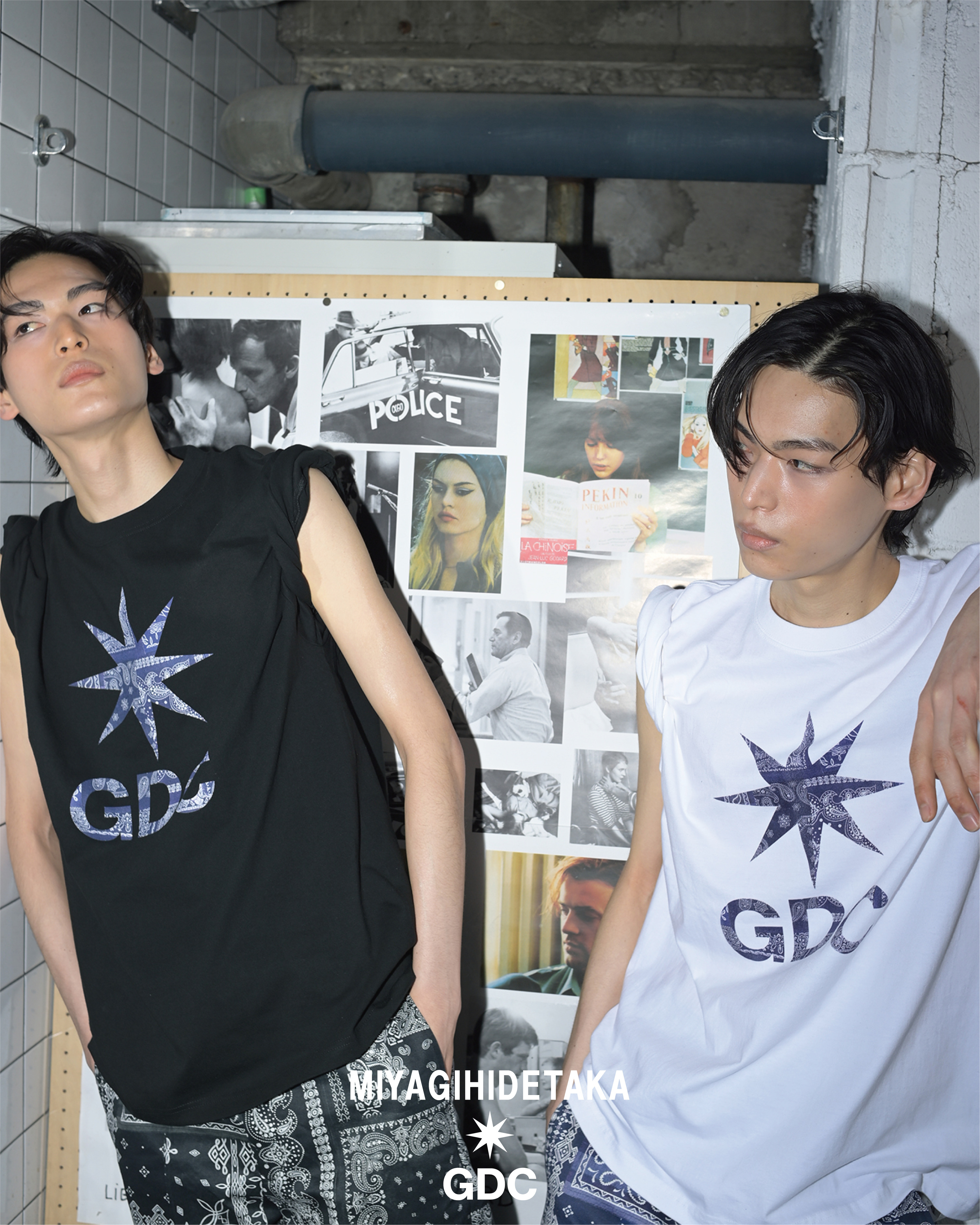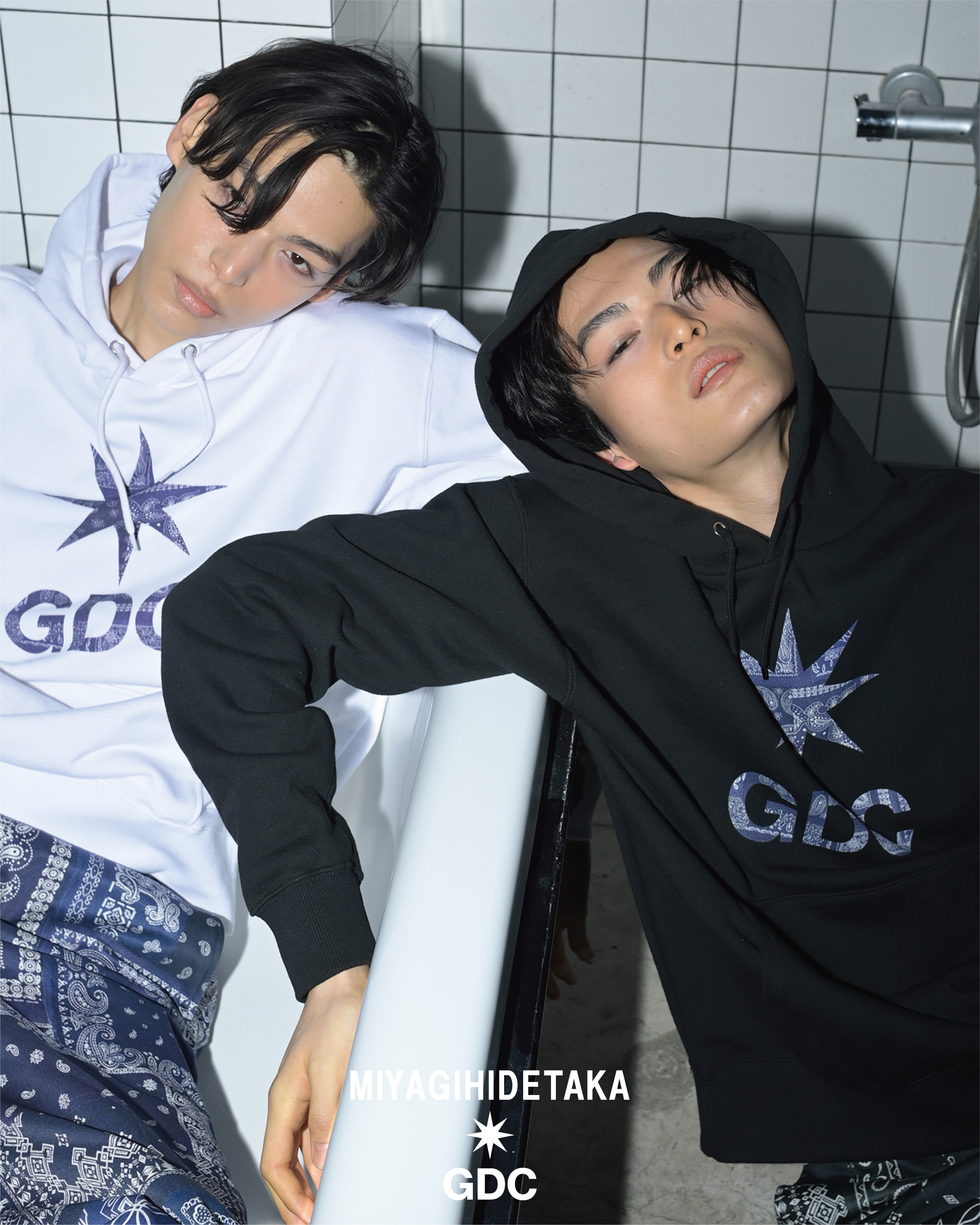 スタイリスト・フォトグラファー・クリエイティブディレクターとして活躍する熊谷隆志が手掛けるストリートブランド〈GDC(ジーディーシー)〉と、デザイナー・宮城秀貴氏が手掛けるブランド〈MIYAGIHIDETAKA(ミヤギヒデタカ)〉によるコラボレーションモデルが登場。