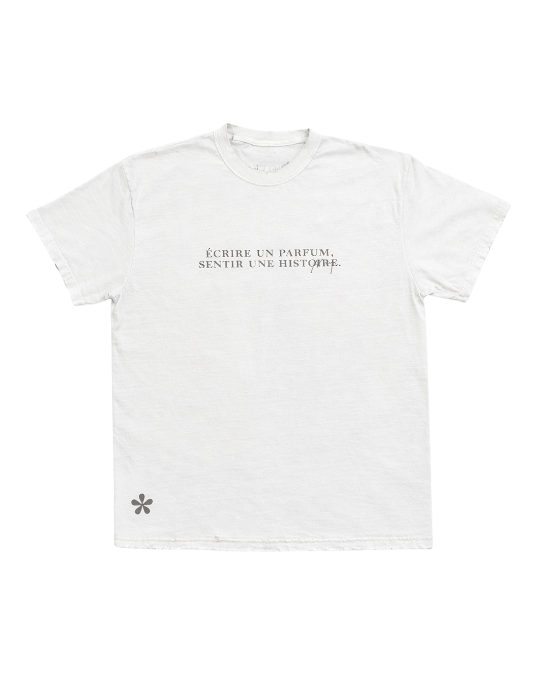 NOTES DE BAS DE PAJE が掲げるメッセージ “Write a perfume, feel a story.” を、 ANCELLMのシグネチャーであるダメージTシャツに落とし込んだ限定アイテムを展開。