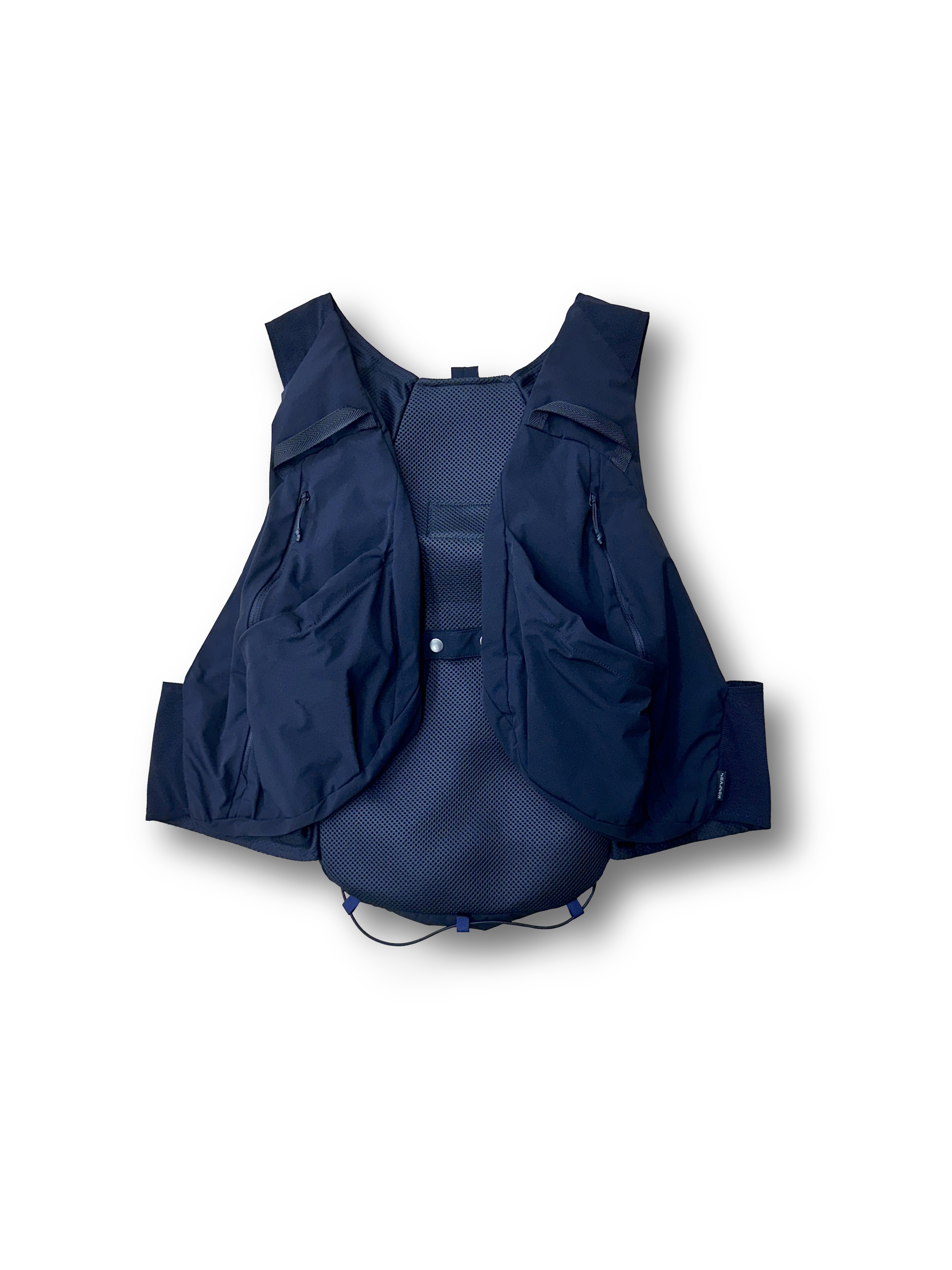 また、sealsonはボディバッグ・バックパックを組み合わせて仕上げた実験的再構築を果たしたベスト。ボディバッグをショルダー箇所に、バックパックを後身頃に採用し、ベストにバッグの機能を持たせたデザイン。と、従来かくあるべきと定義されている状態に対して、実にユニークなアプローチを実践し、コレクションテーマを象徴する作風についても是非注目頂きたい。