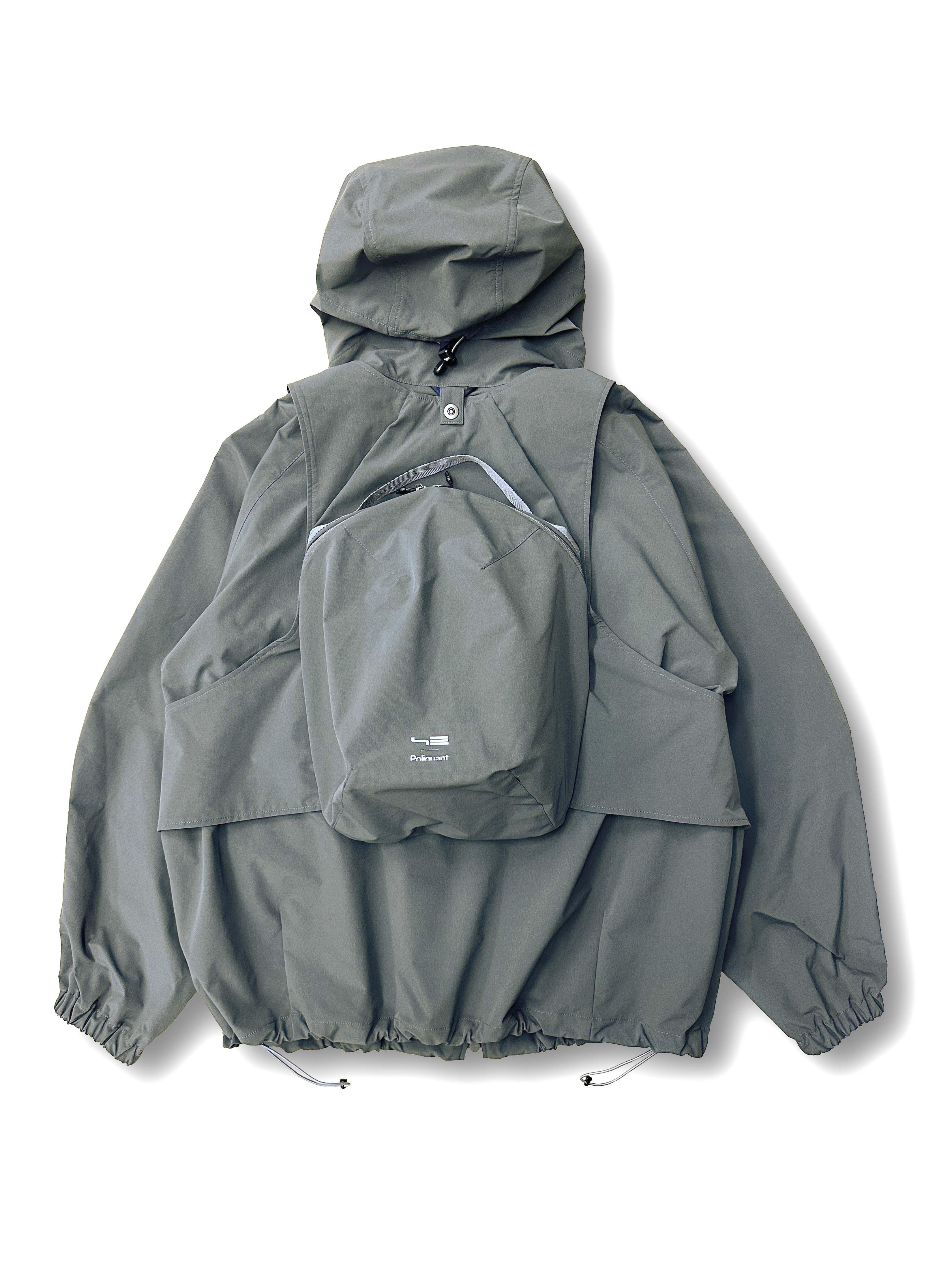 日常生活におけるバッグについて常に機能的なデザイン/スペックを探求・開発し表現するTAIWAN発のバックパックブランドSEALSONとのセカンドコラボレーション。SS26シーズンではSEALSONのアイコニックなバッグとして知られるSR1とDROP14のデザインディテールを引用し、バッグの機能を持つベストに再構築した実験的なコレクション。このスタイルではベストとフードジャケットとの共地による2 IN 1仕様にアップデートされたデザインとなっている。