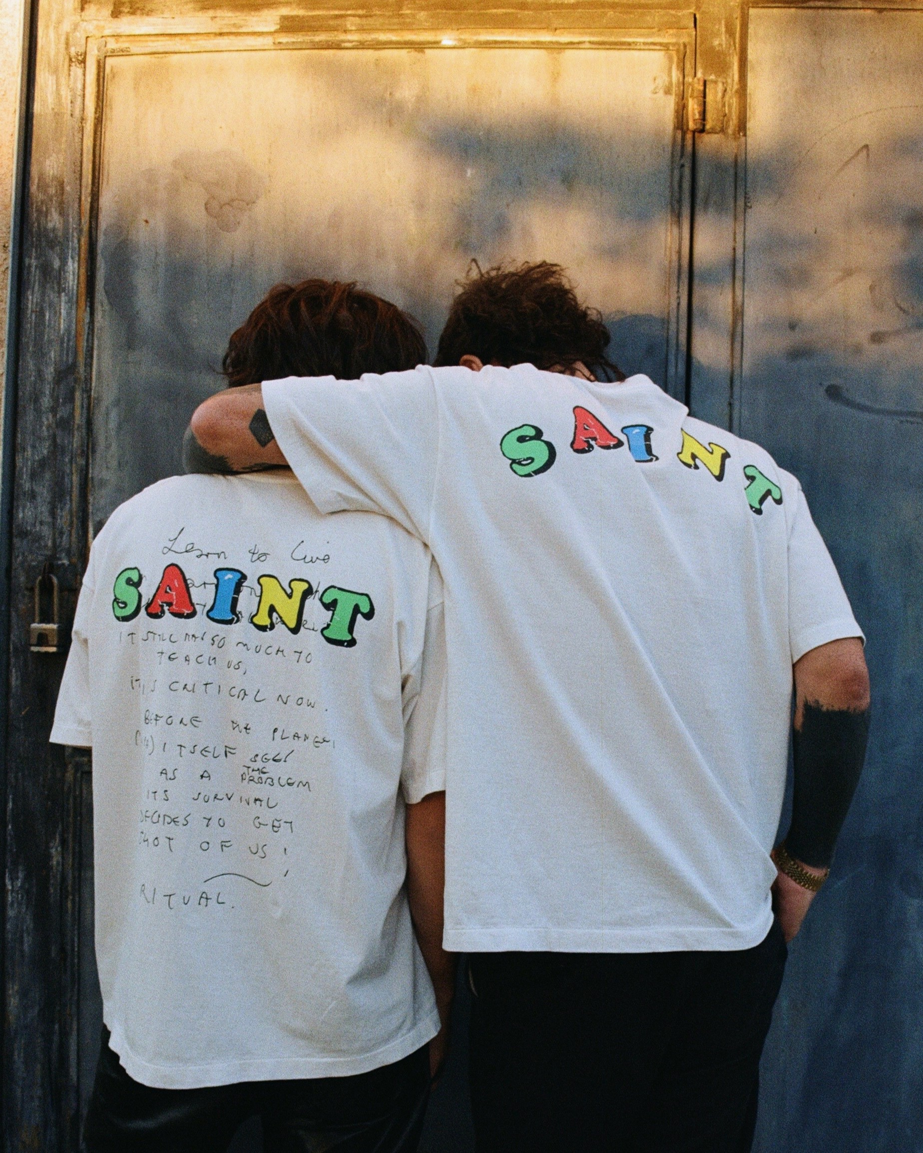 Jamie Reidとのコレクションでは、象徴的なアーカイブをもとに©SAINT Mxxxxxxの代名詞でもあるTシャツへと再構築。