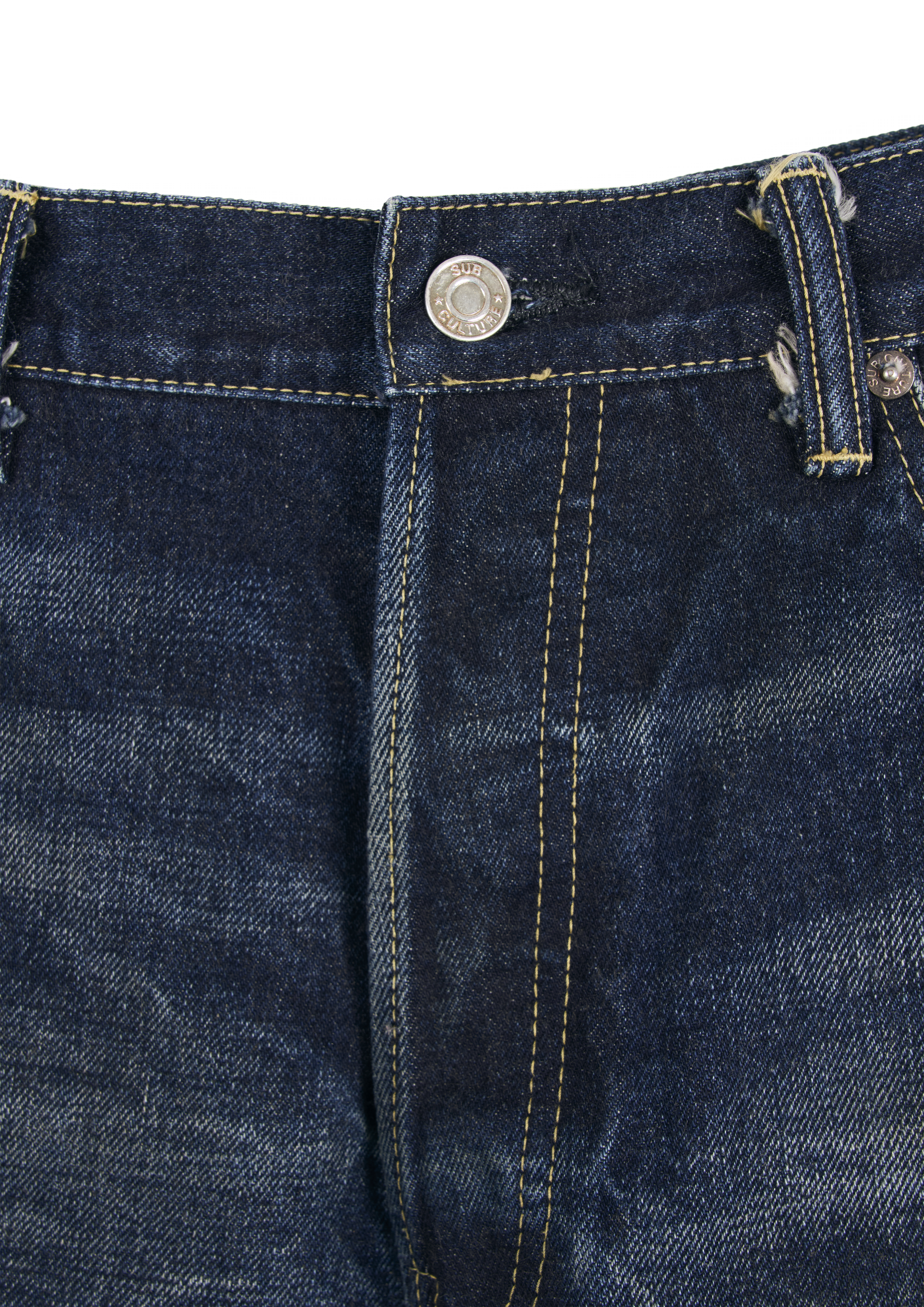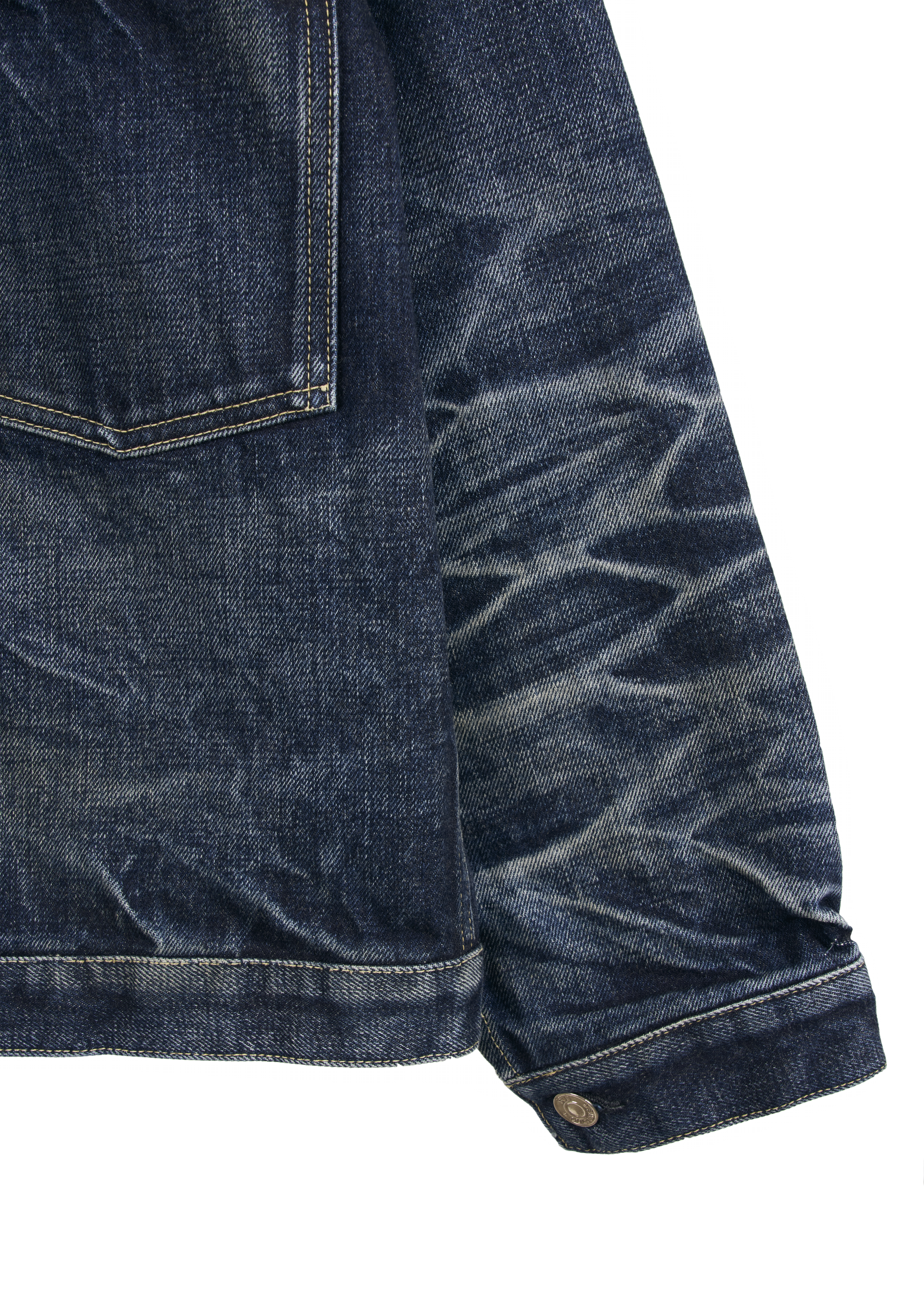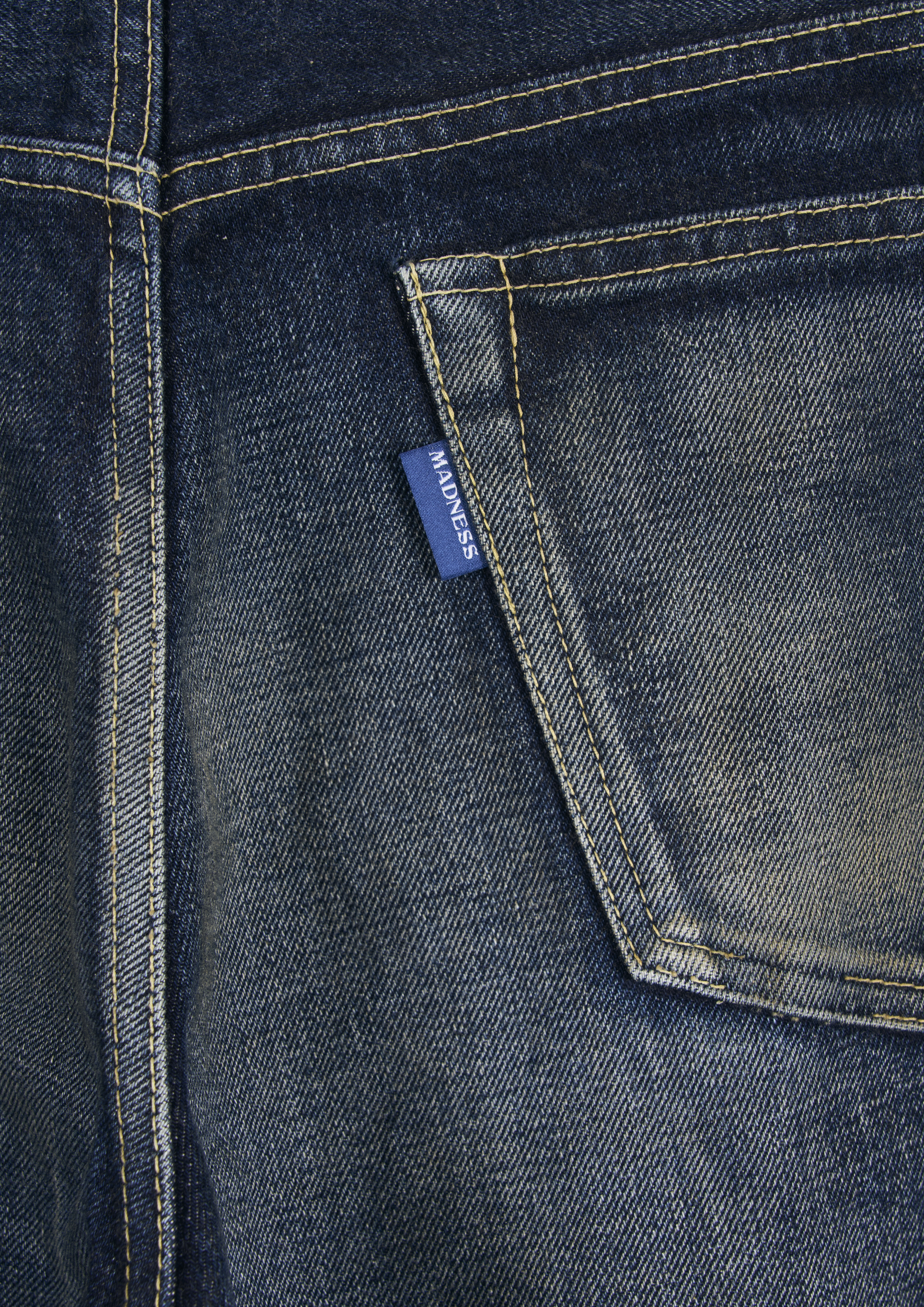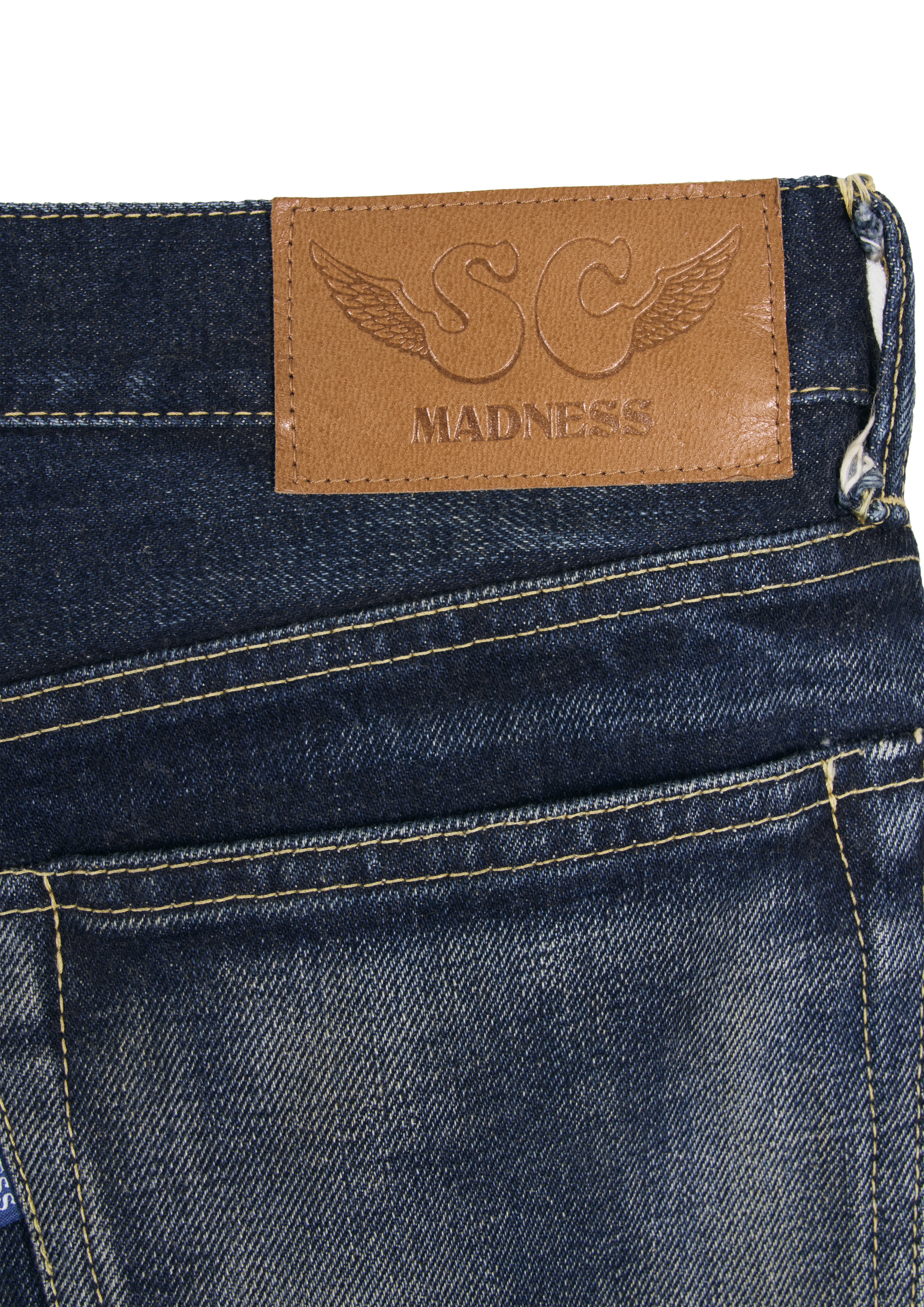 それぞれにシンボリックなデニムプロダクトを作る中、SC Subcultureは生地・付属を、MADNESSはシルエットのアイディアを出すことで、スペシャルなデニムジャケット&パンツのセットアップを作成することに。特筆すべきは、ヴィンテージ加工。通常の加工とは異なる運動ポジションに施された激しい色落ちやハチノスは、モーターサイクルラヴァーならではの圧巻の仕上がり。フットペダルへのキック、ライディング時のシートポジション、自ら操作しするハンドル、などバイク乗りならではの動きから得られる独特の経年変化を落とし込んだジャケット、パンツは他に類を見ない仕上がりだ。