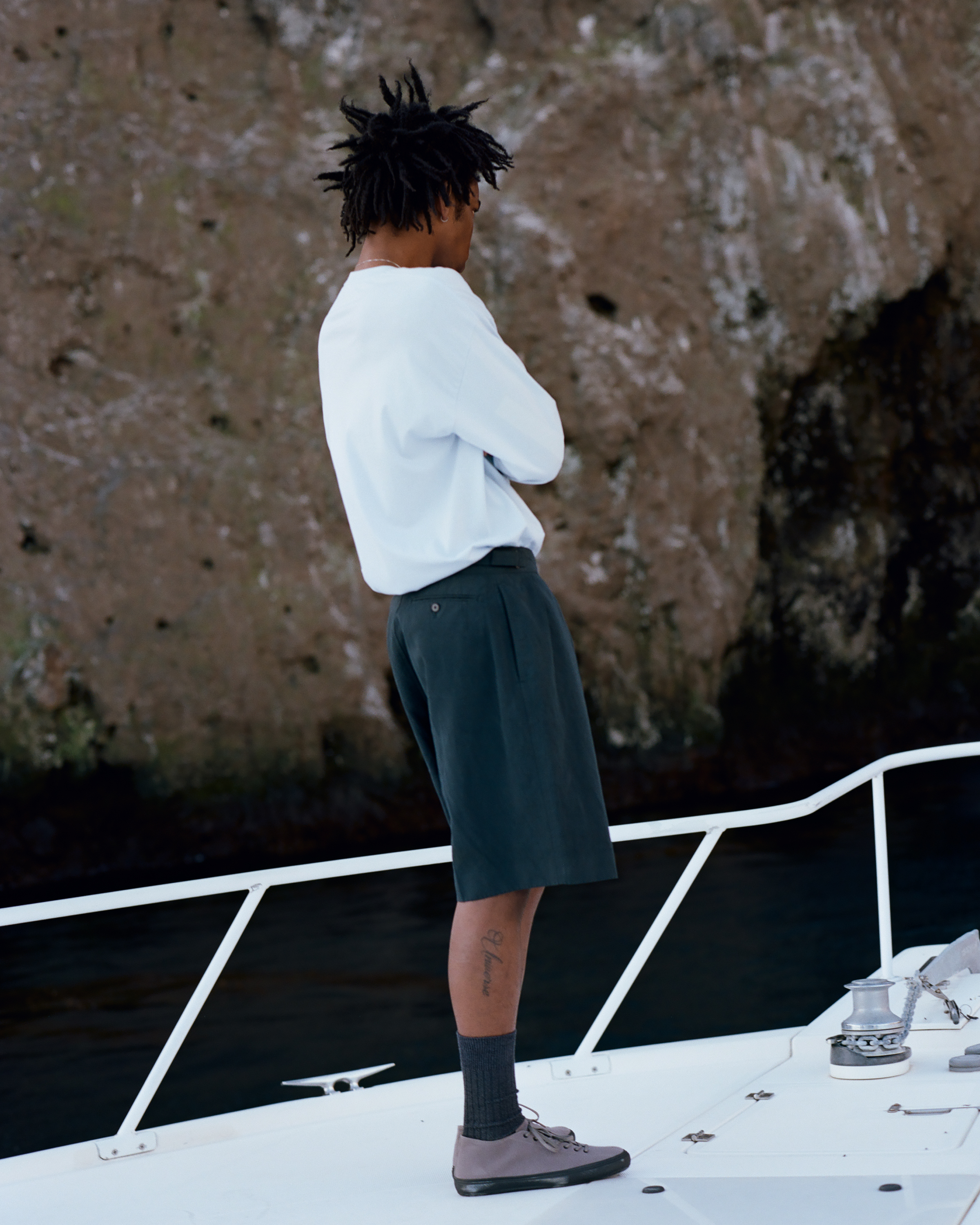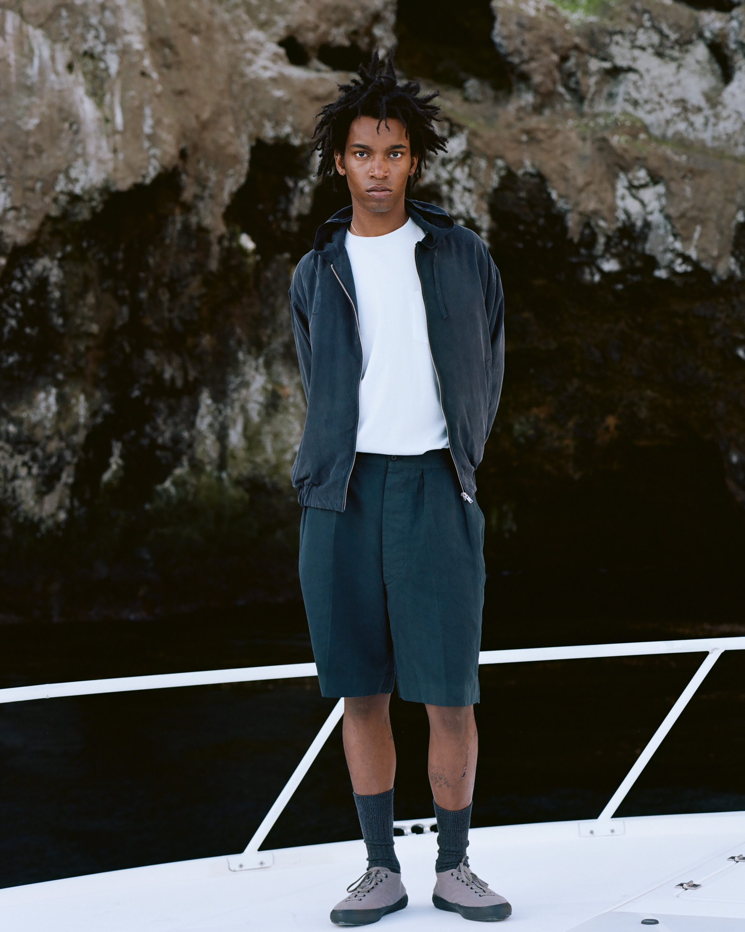 今回のコラボレーションでは、ジャケット、カットソー、パンツ、レザーポーチなど全6型を製作。