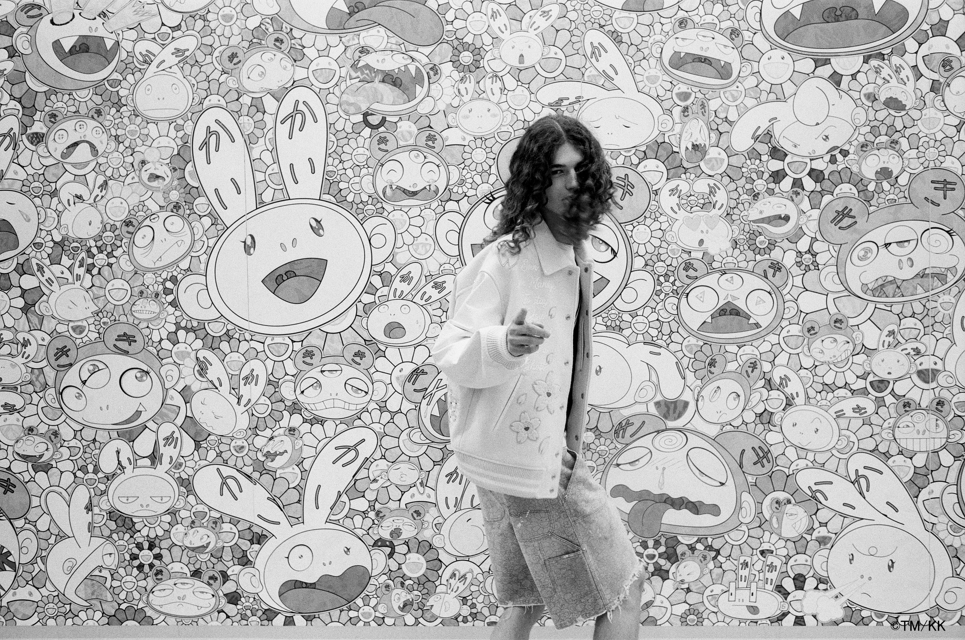 記念すべき第一弾では、村上隆の「桜」と「ドクロ」をモチーフにした本コレクションの象徴ともいえるバーシティージャケットをはじめ、「お花」を用いたTシャツやフーディー、スウェットパンツ、「青龍」「白虎」を採用したスウェットなど、計6型を展開する。
