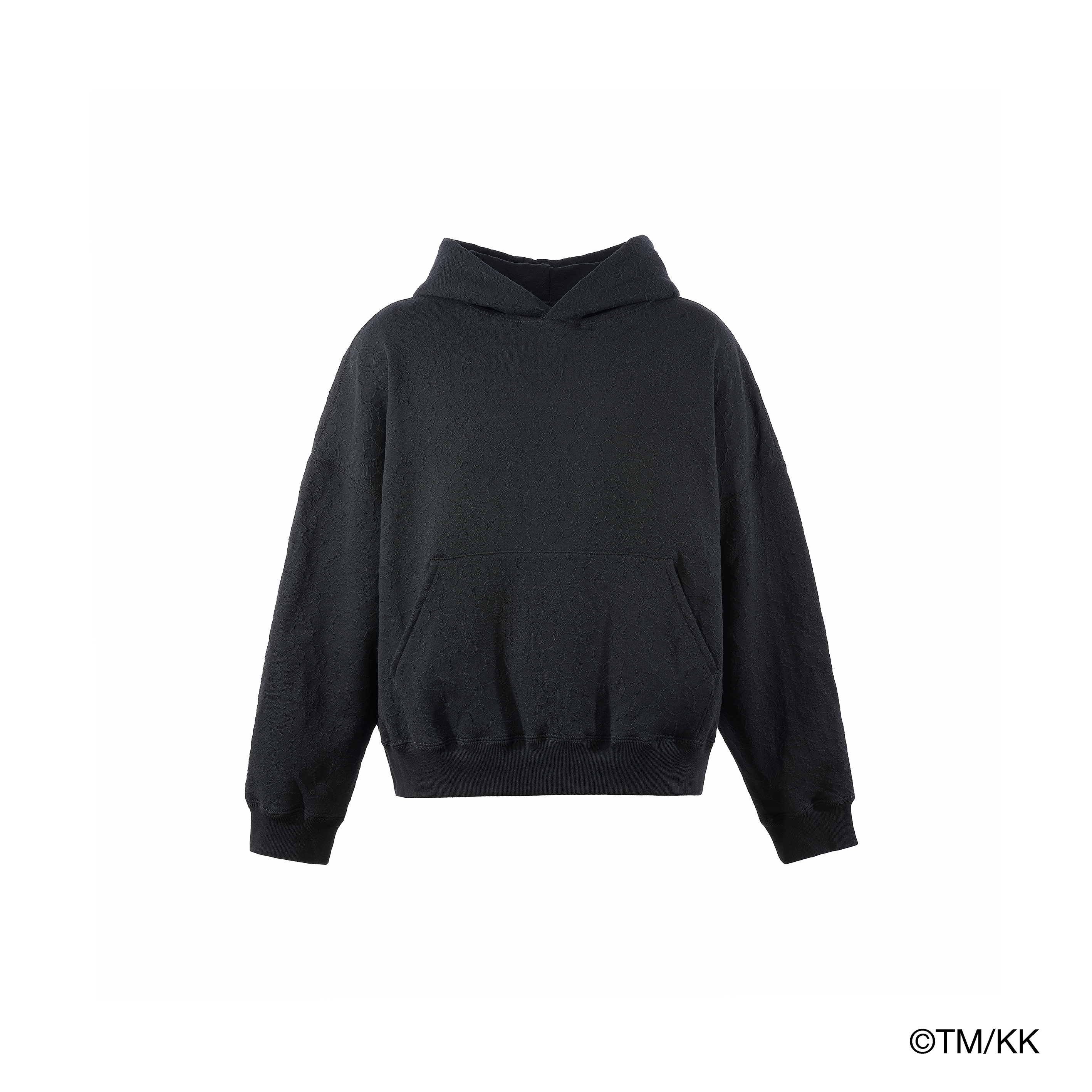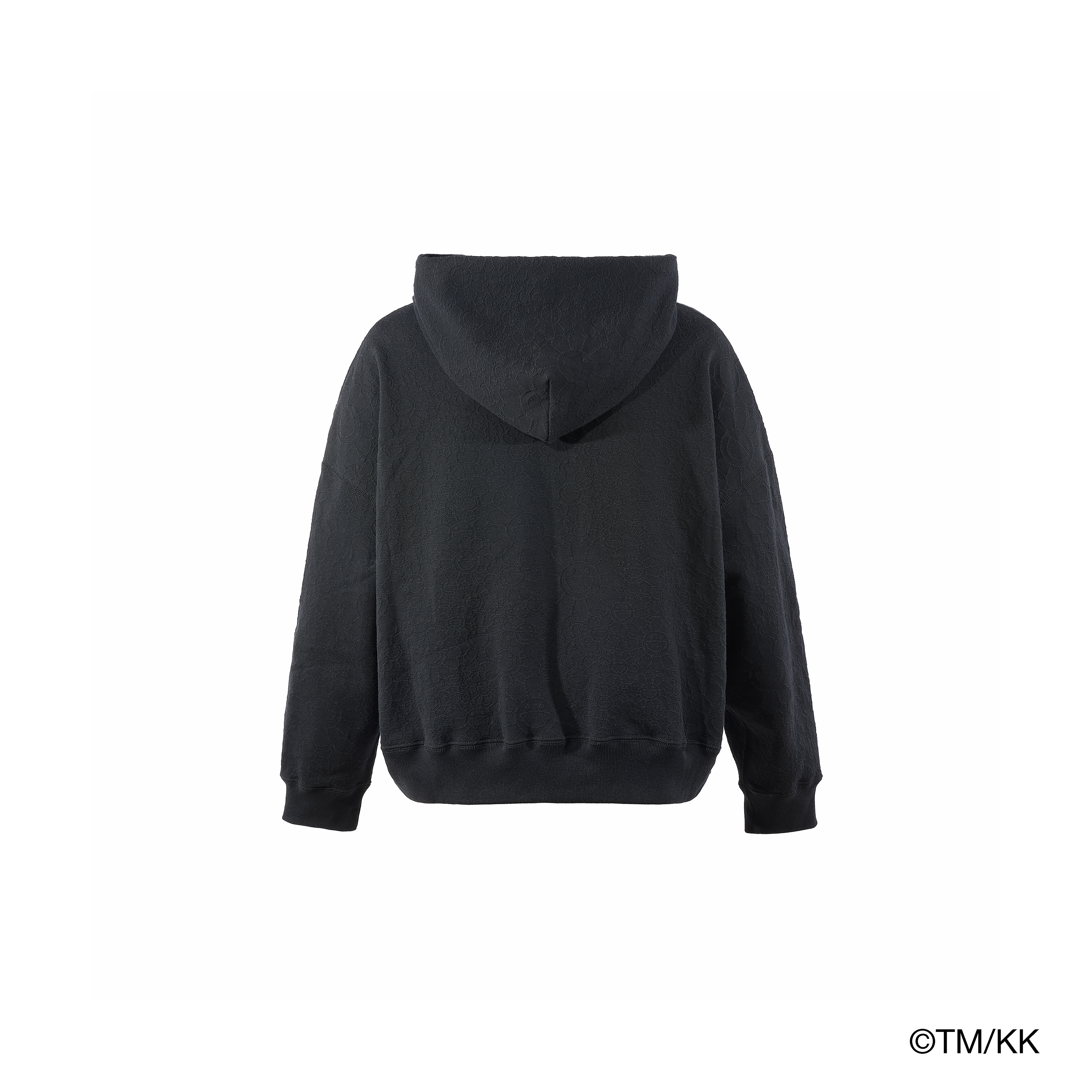 村上隆氏の代表的モチーフである「お花」を、オリジナルで製作したジャカード生地で表現したセットアップ。フーディーにはゆとりのあるワイドシルエットを採用し、パンツはセットアップとしてのバランスを考慮した、やや細身のシルエットに仕立てている。アートワークの存在感を際立たせながら、シルエットのコントラストによって洗練された佇まいに仕上げている。