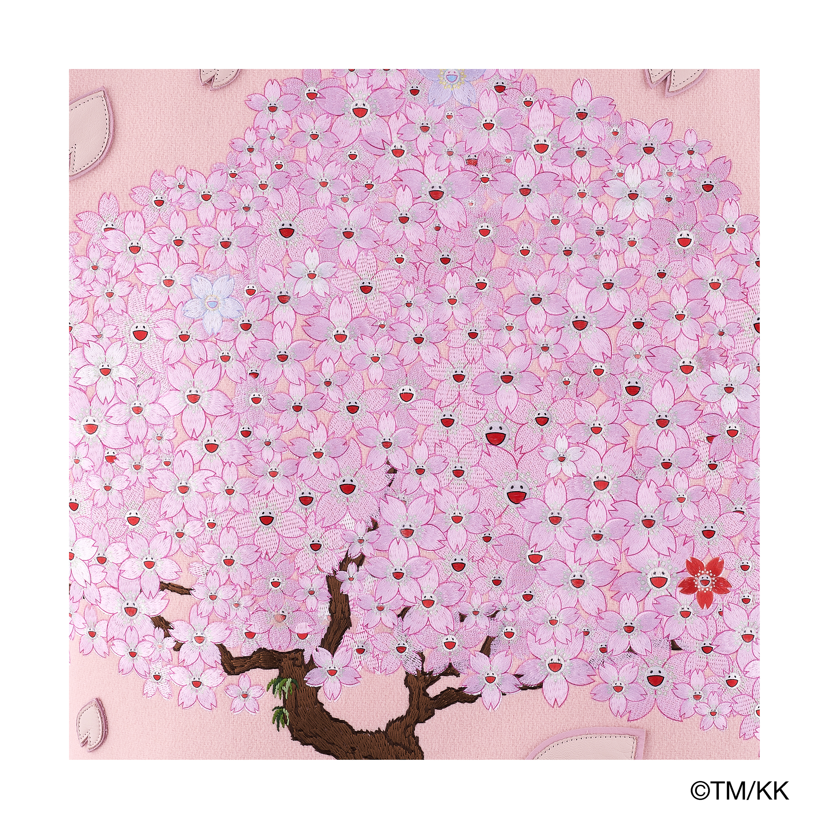 村上隆氏のアートワークの中でも「お花」に継ぐ、人気キャラクター「桜」を採用。「お花」の永遠性と異なる満開の「桜」の華やかさや高揚感は、短期間に咲いて散る「桜」への日本人の美学が投影されている。ドクロはメメントモリ(死を思え)を感じさせると同時に、村上氏にとっては日本の敗戦のイメージも含んでいる。また、集積したドクロのオールオーバーな画面構成は抽象表現主義のエッセンスも含んでいる。村上隆氏の桜のアートワークを落とし込んだ本作は、高度な技術と膨大な時間を費やして製作された本コレクションを象徴するアイテム。