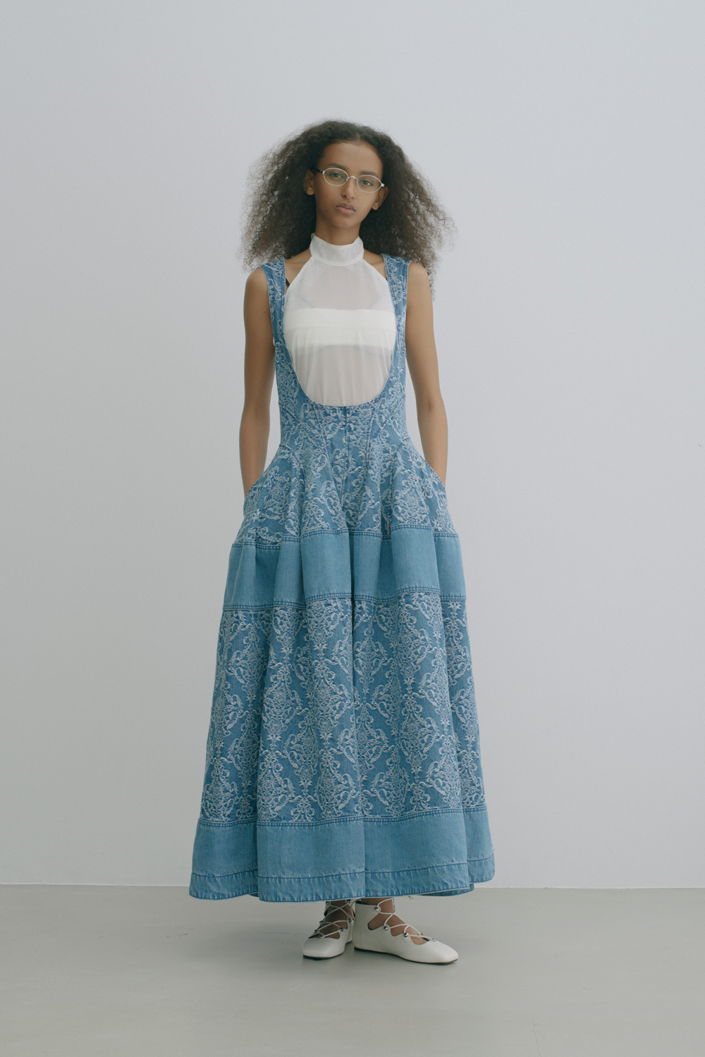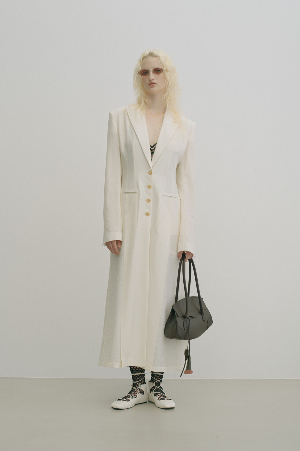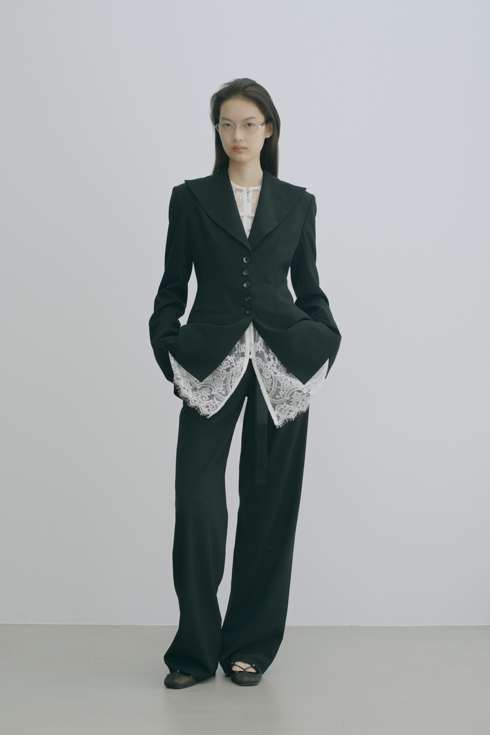 シェイプは、アイラインに沿うよう整えたオーバル型。やや横長に設定することで、クラシックに寄りすぎず、今の空気感をバランスよく纏わせた。テンプルには程よいボリュームのアセテートを採用し、メタルの緊張感に対して柔らかさと奥行きを加え、モードでありながら女性的な印象を引き出す。