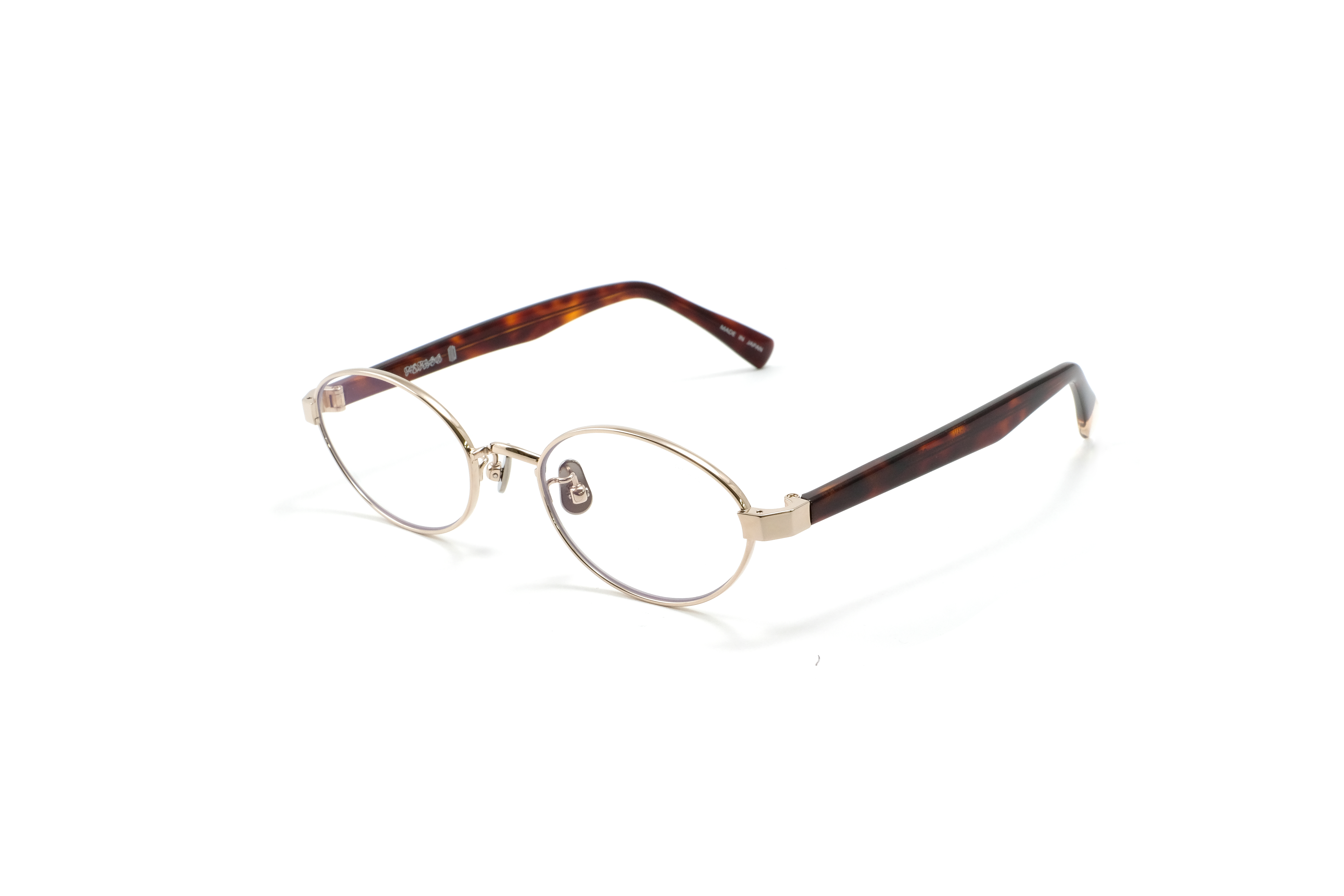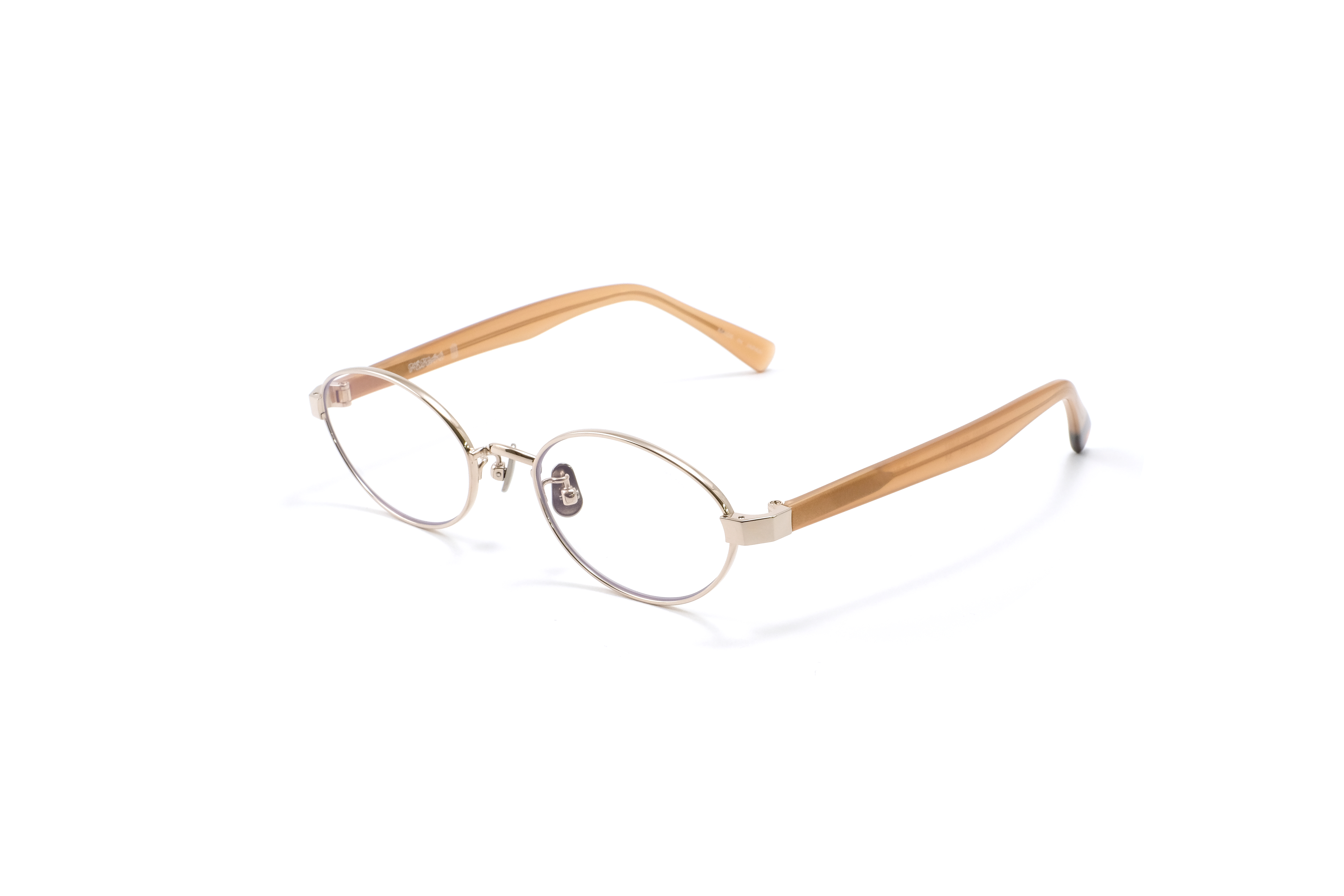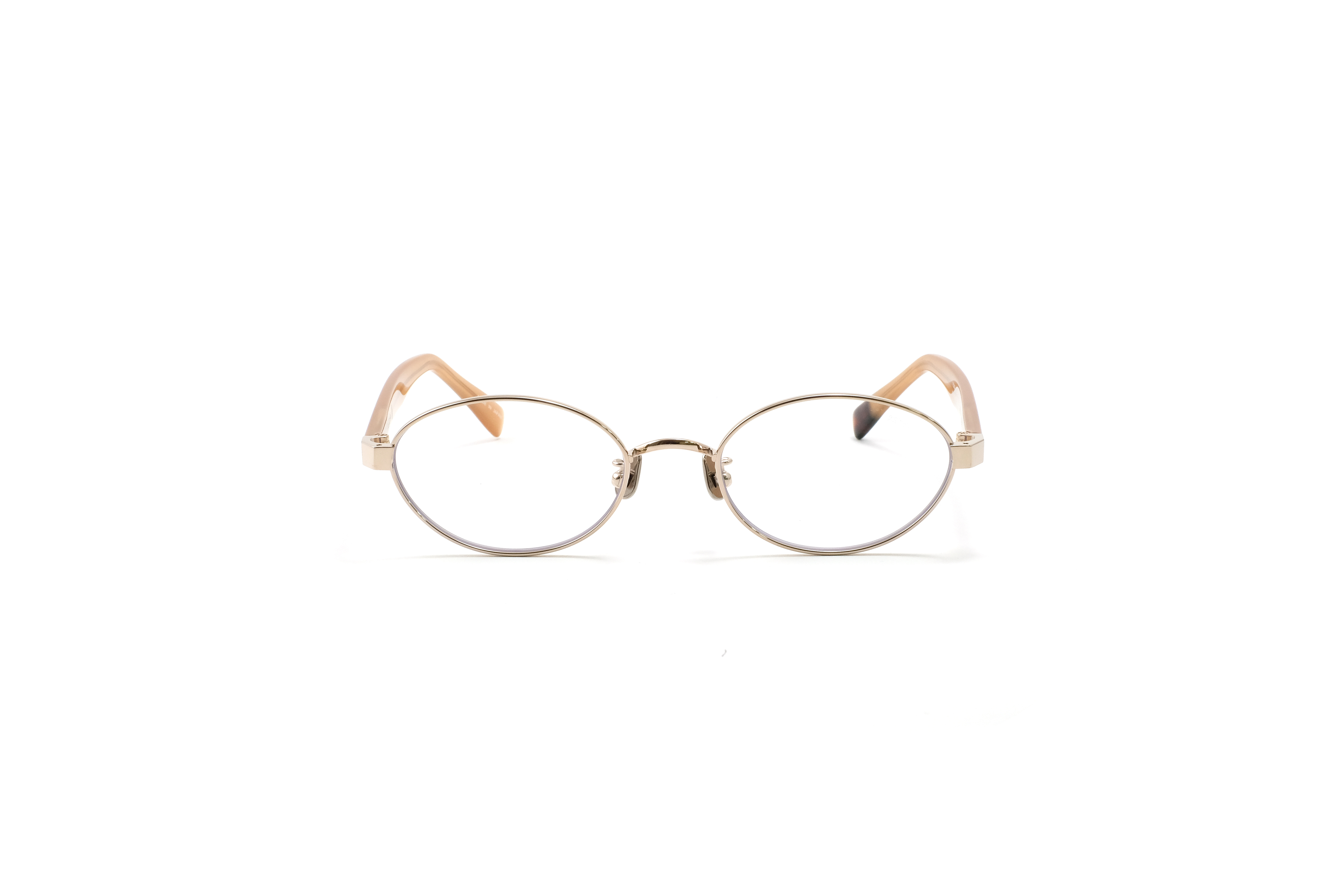 シャンパンゴールドのメタルフロントに、ハバナ柄のアセテートテンプルを合わせたカラー。異素材の質感と色の奥行きが重なり、クラシックなニュアンスと女性らしさを演出します。落ち着きの中にさりげない華やかさを持つカラーです。