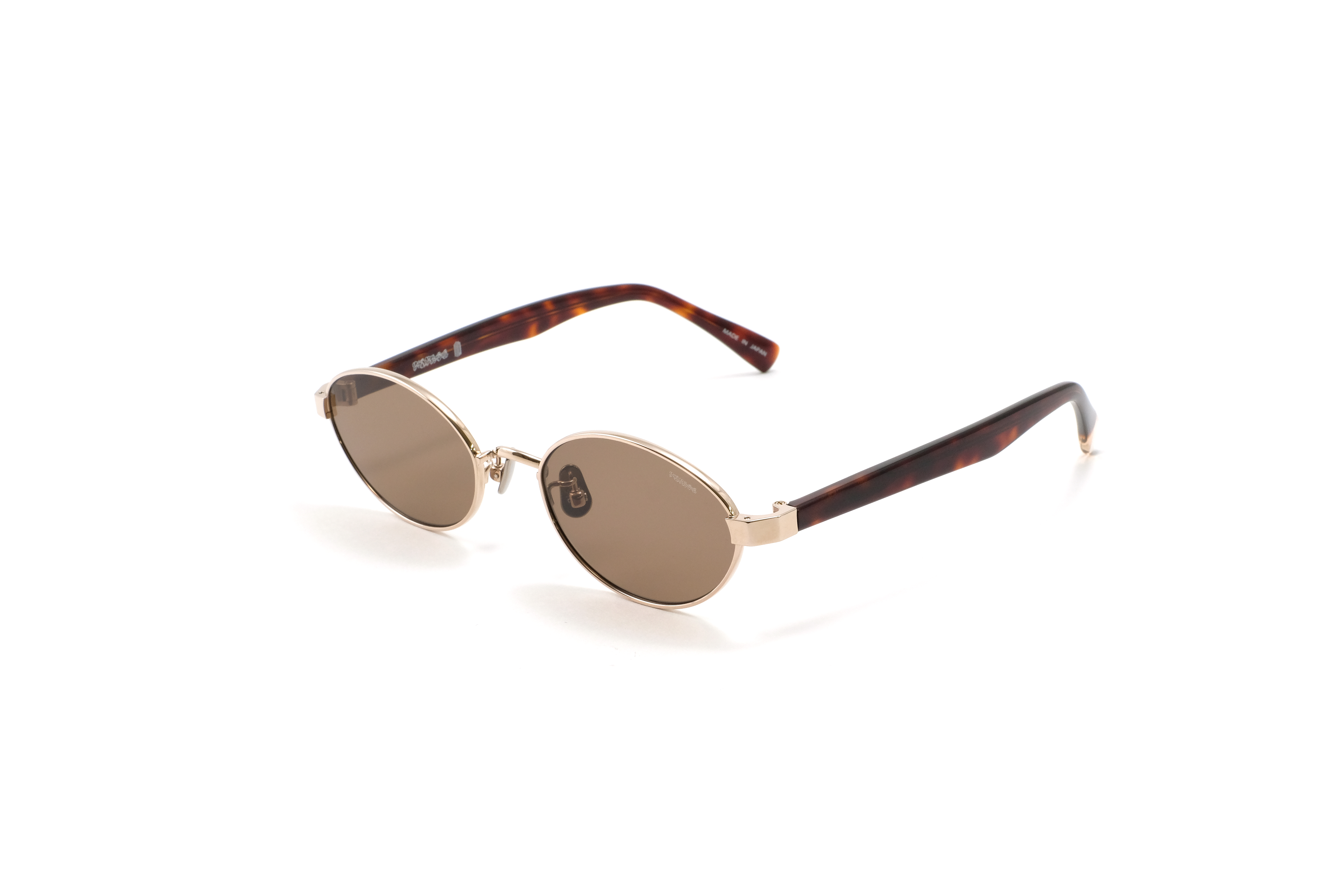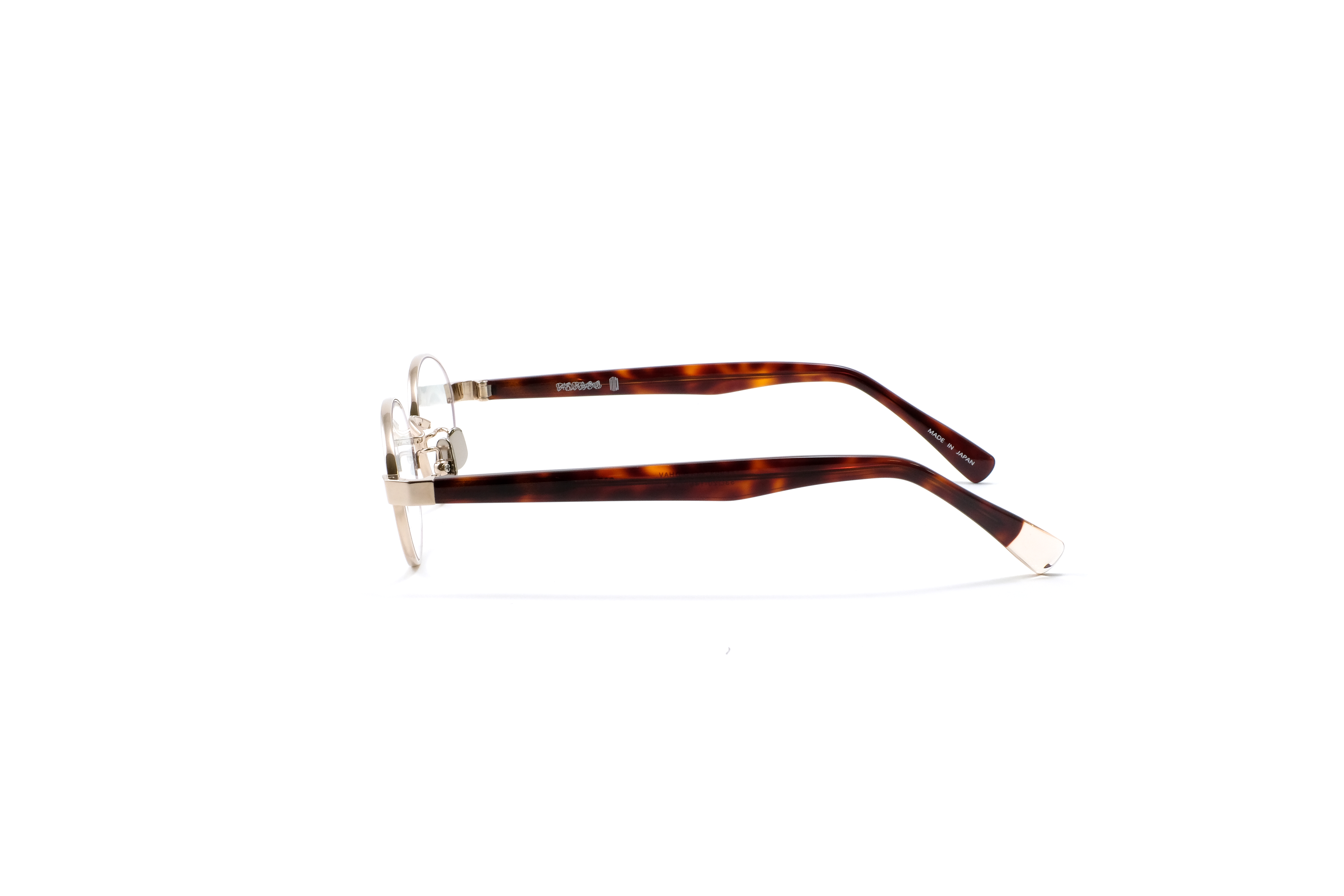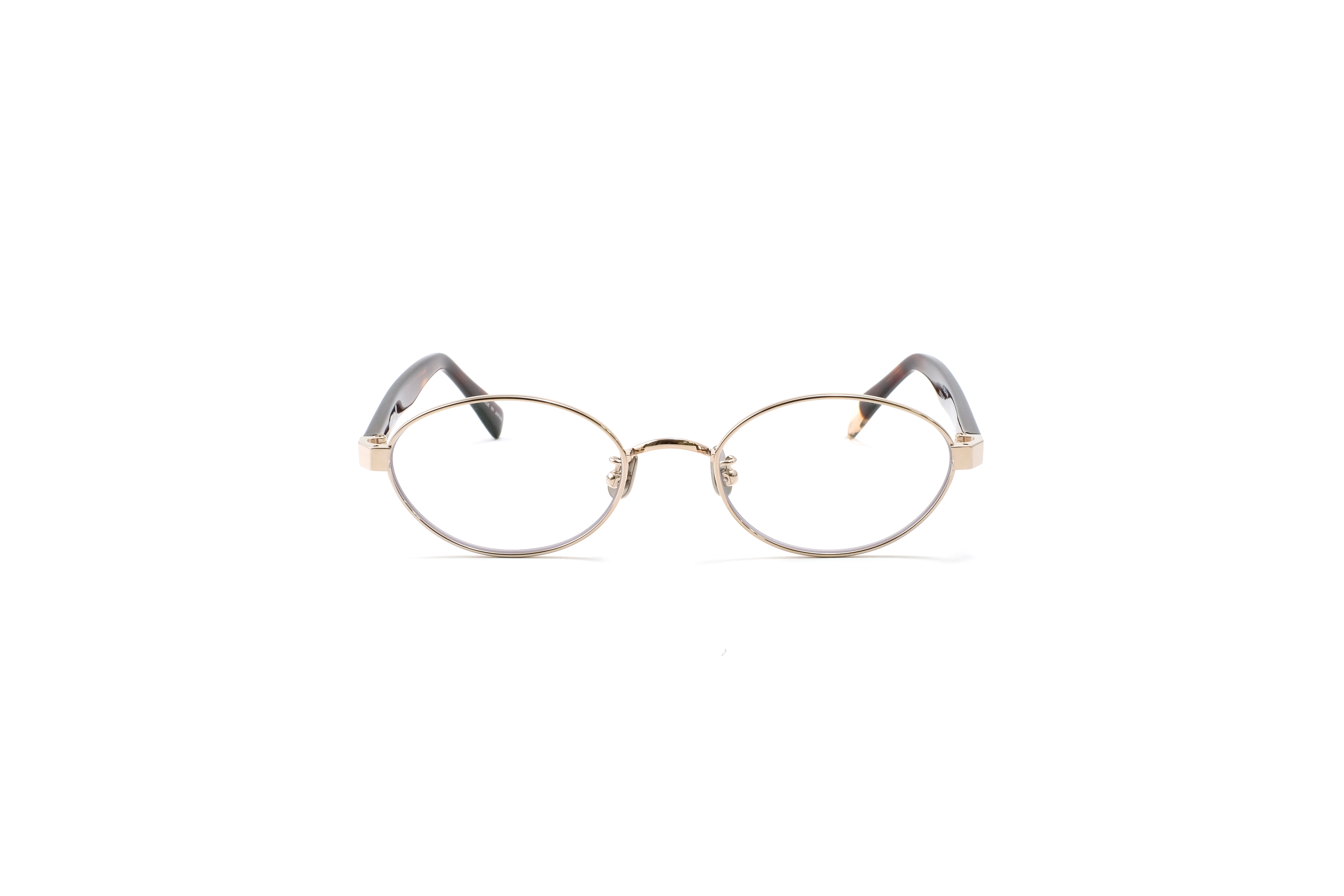 シャンパンゴールドのメタルフロントに、ハバナ柄のアセテートテンプルを合わせたカラー。異素材の質感と色の奥行きが重なり、クラシックなニュアンスと女性らしさを演出します。落ち着きの中にさりげない華やかさを持つカラーです。