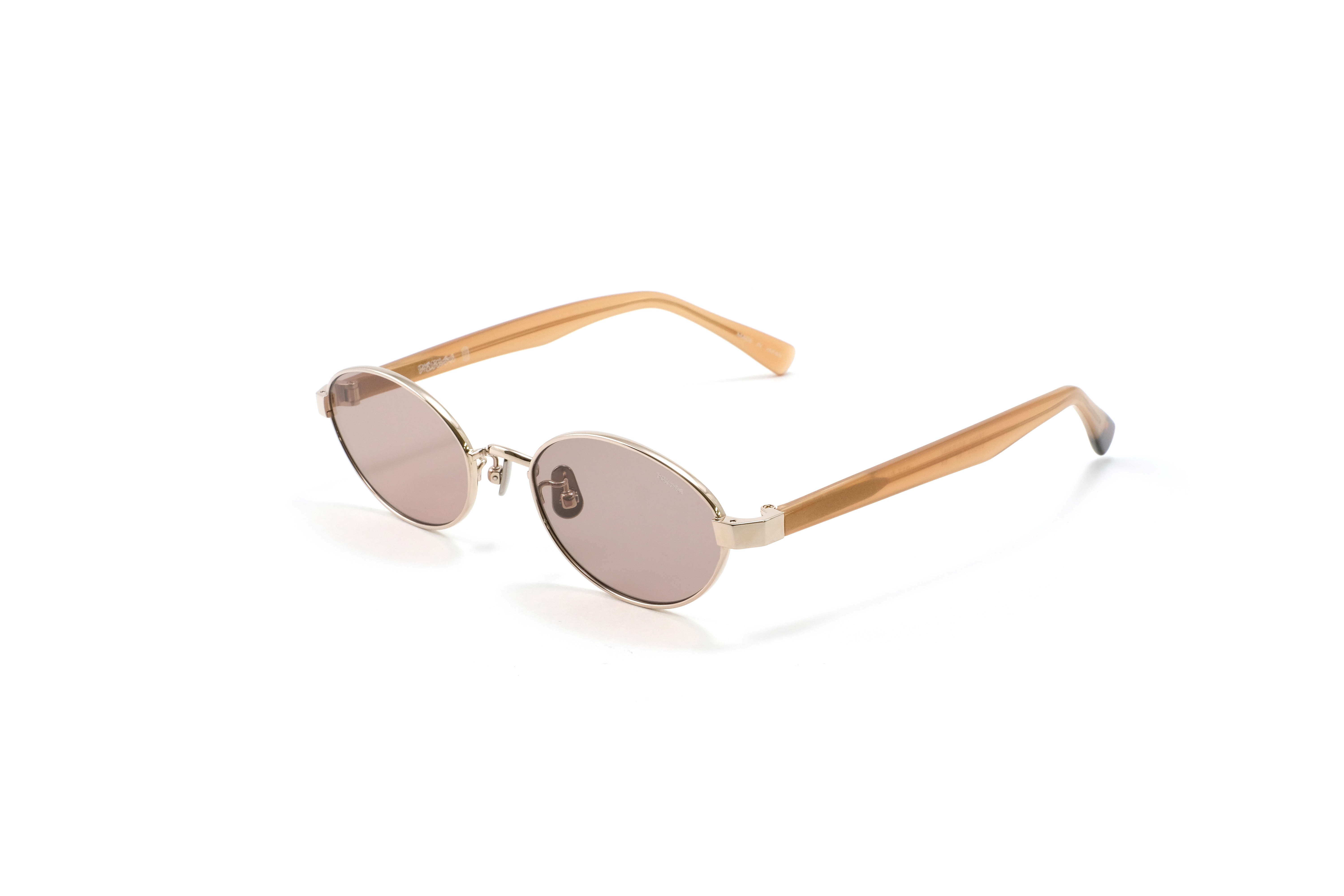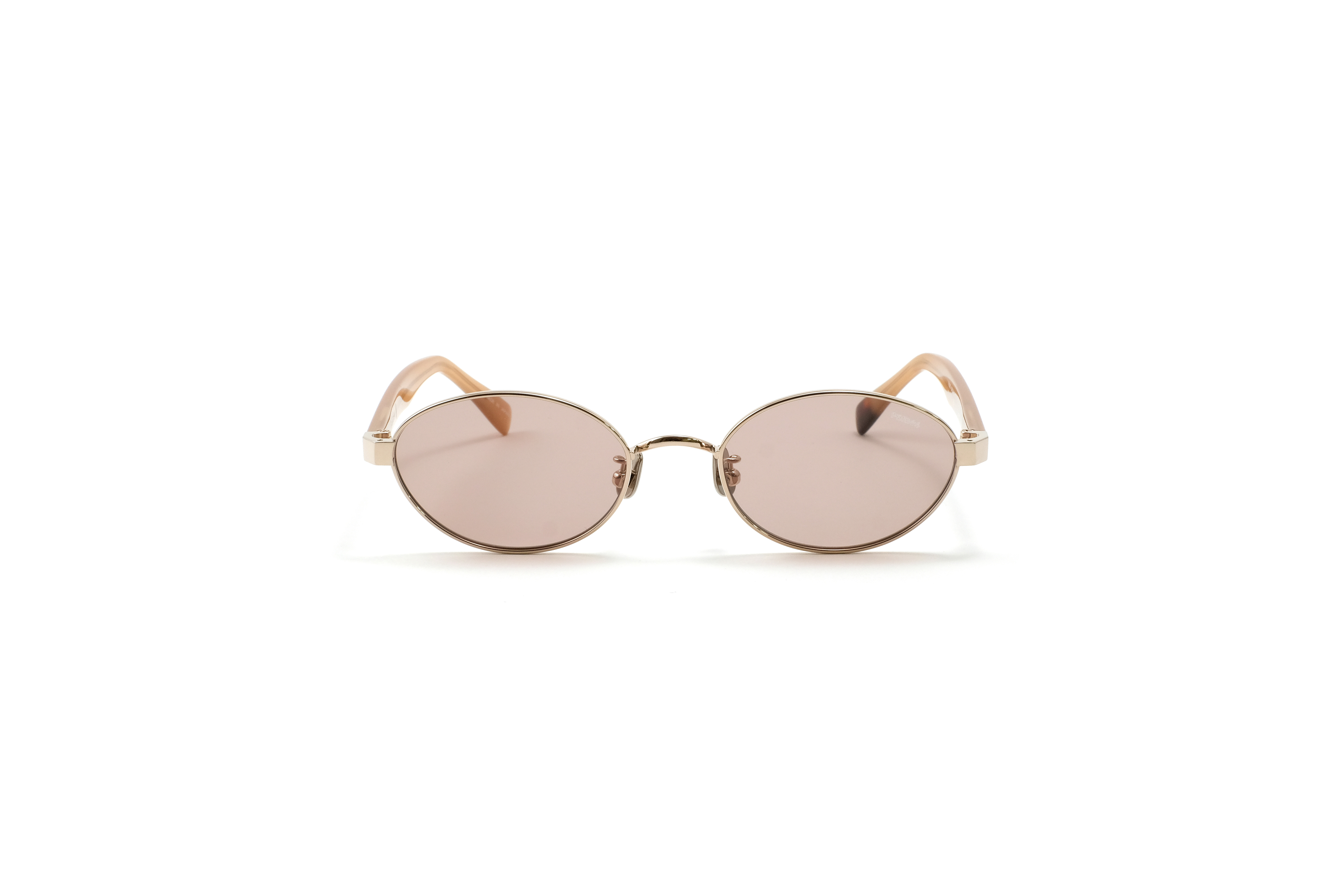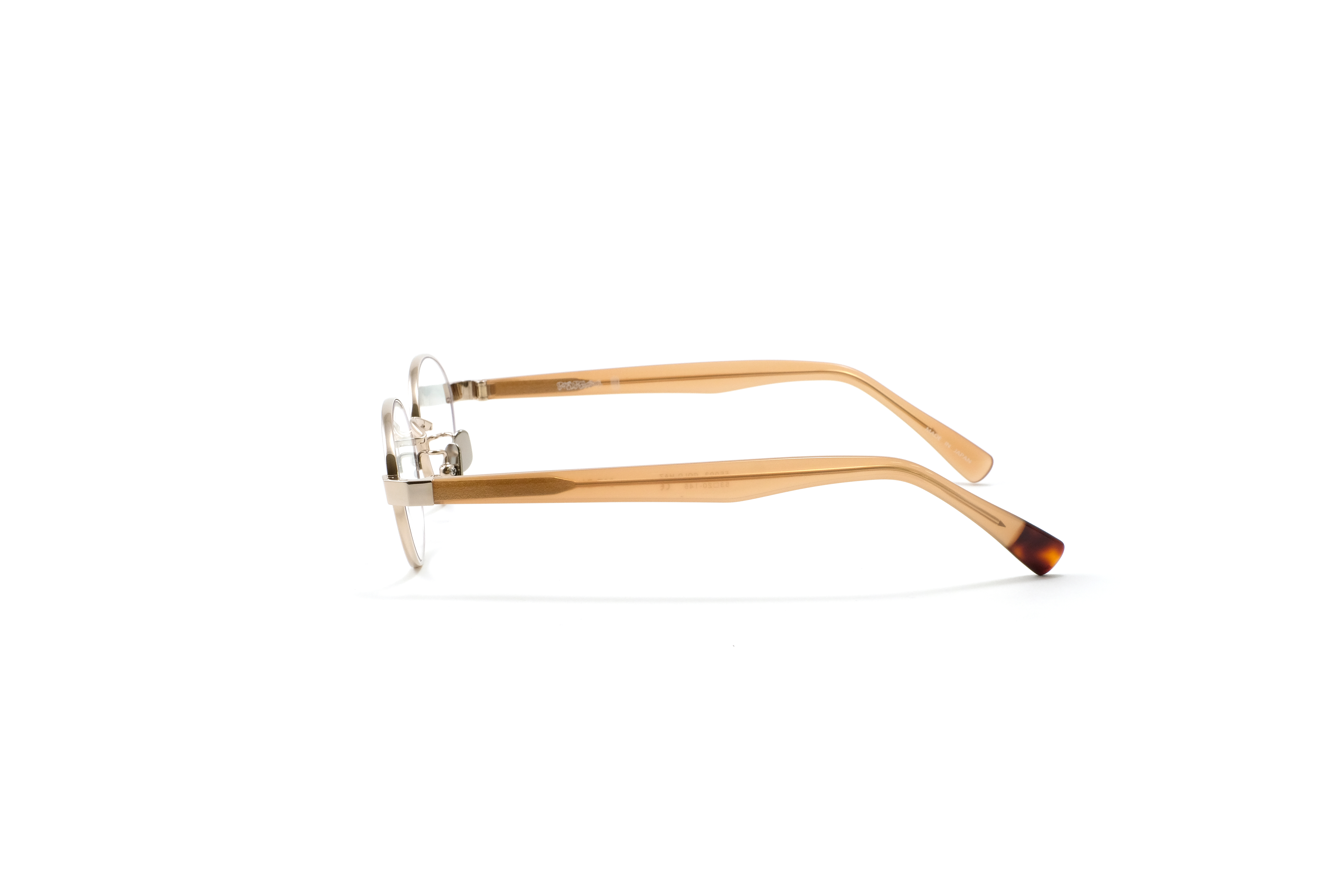 フロントには柔らかなシャンパンゴールドのメタルを、テンプルにはヘーゼルカラーのアセテートを採用。肌に自然に馴染みながら、さりげないモード感を引き出します。上品で軽やかな印象に仕上がるカラーリングです。