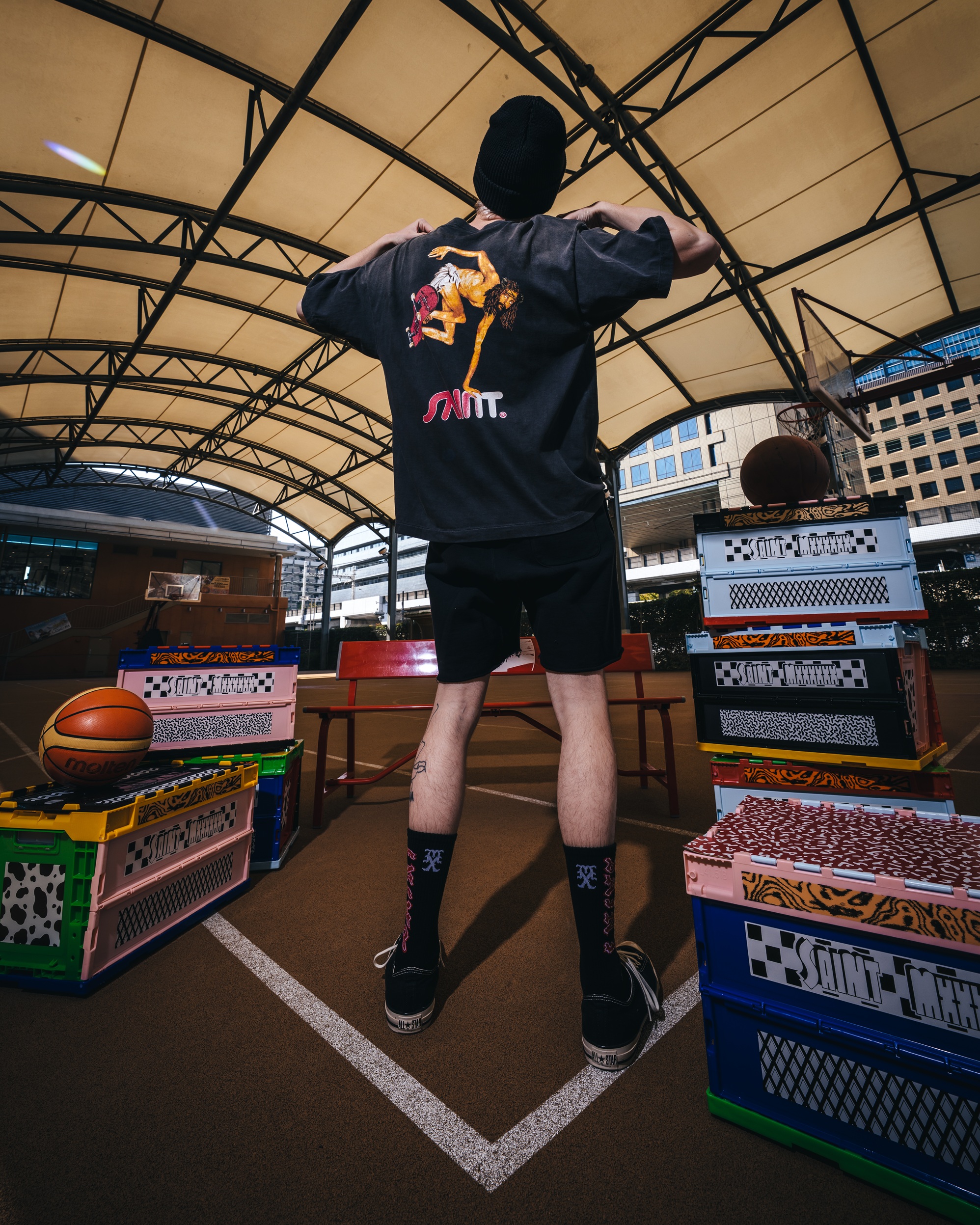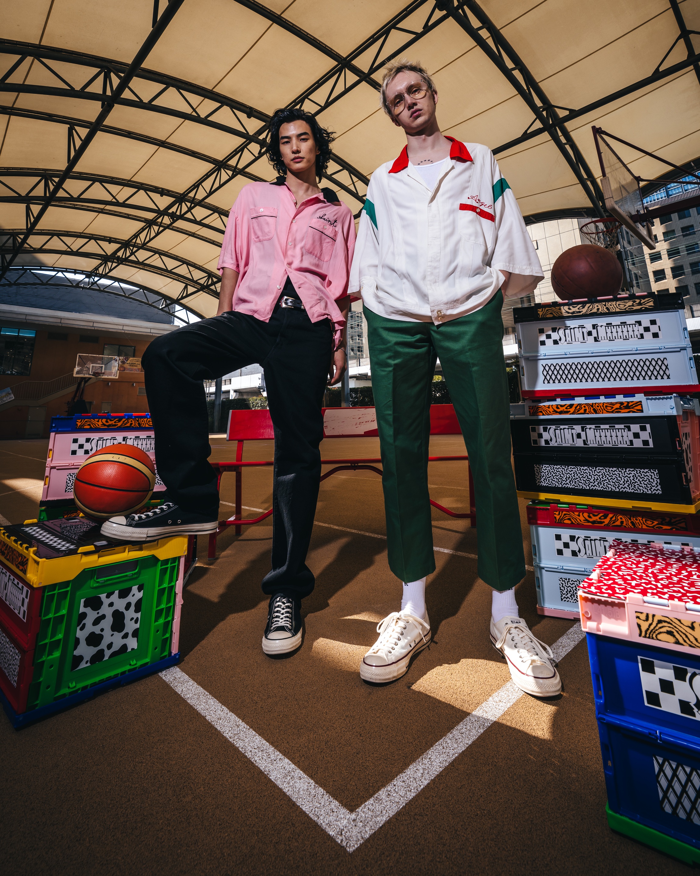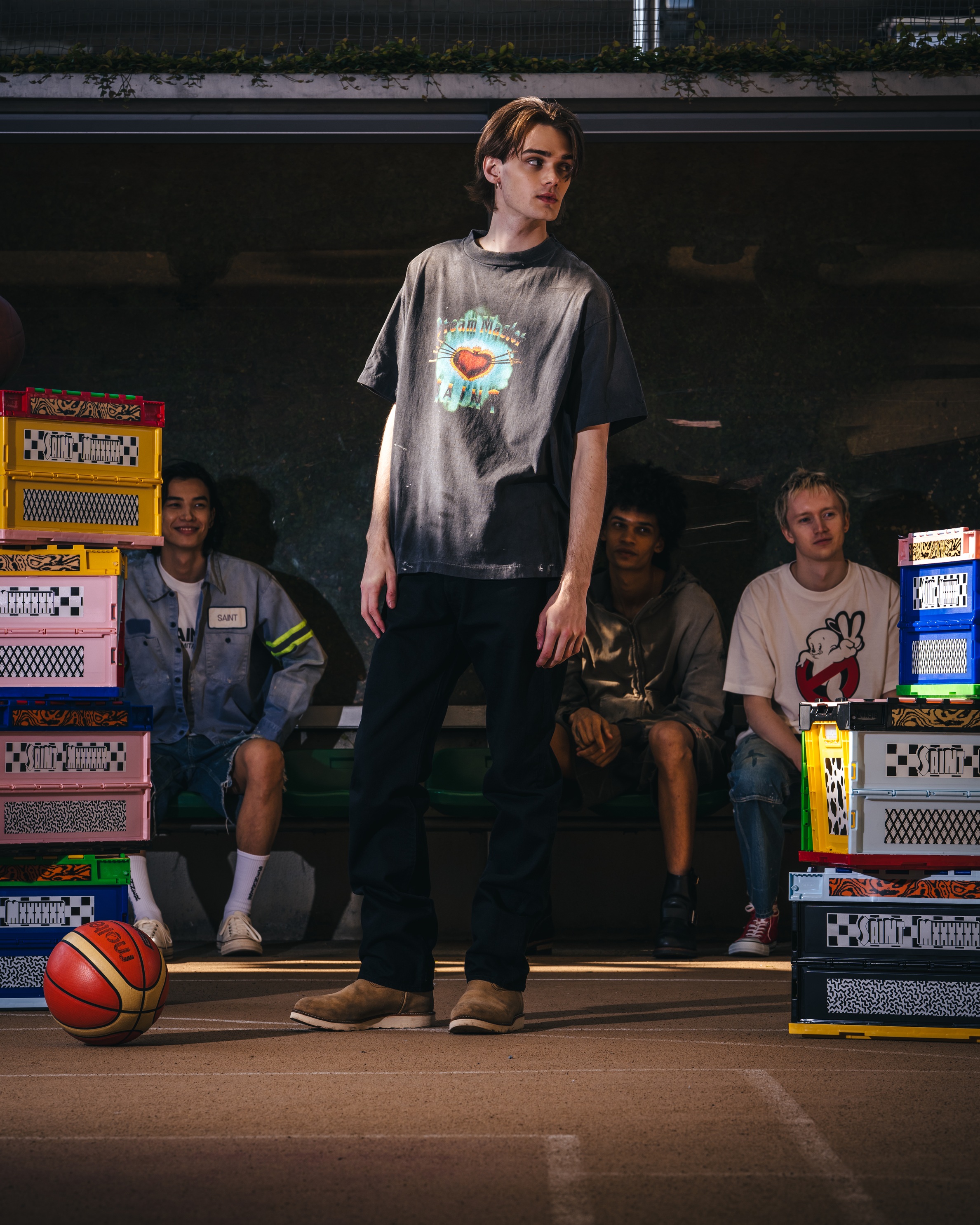 ©SAINT Mxxxxxxデザイナーとも親交の深いBoys of Summerとのコラボレーションでは、デザイナーが所有するヴィンテージのリンガーTシャツを着想源に、Boys of Summerが描き下ろしたグラフィックやコラボレーションを象徴するBoys of Saintのレタリングを落とし込んでいる。ビジュアルは©SAINT MxxxxxxデザイナーのCali DeWitt氏が撮り下ろしている。