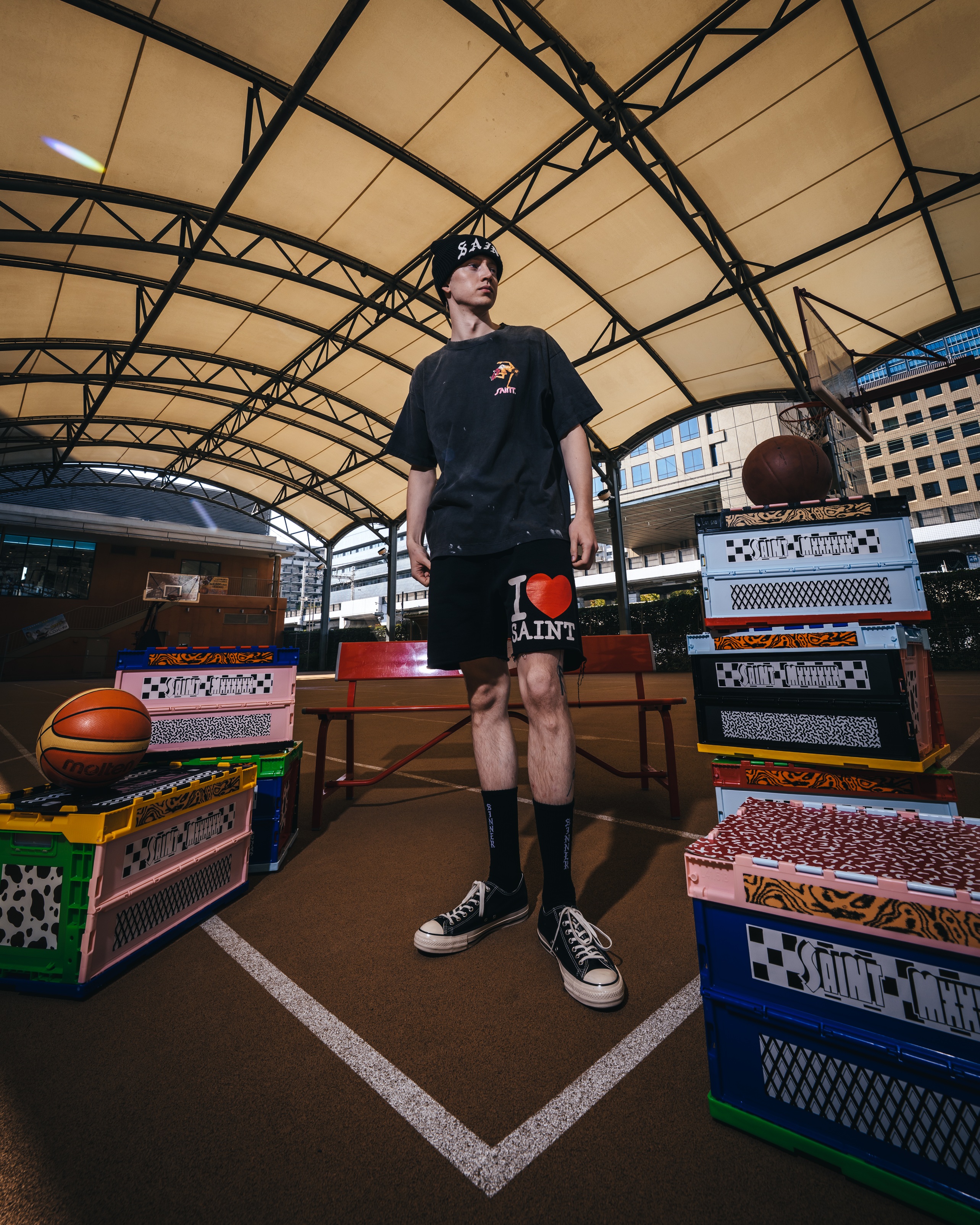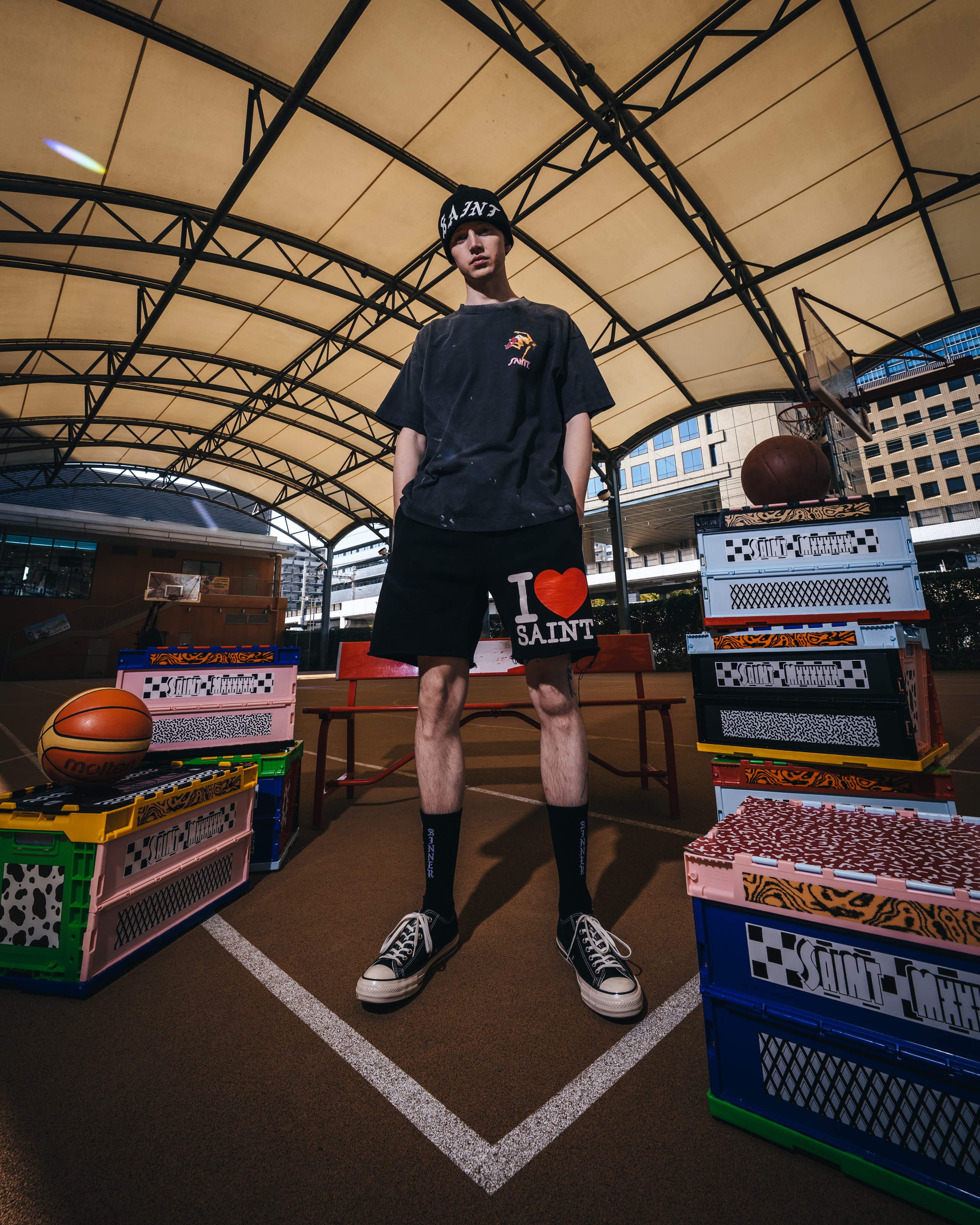 今シーズン第2弾となるBOUNTY HUNTERとのコラボレーションでは、SKULL KUNと©SAINT Mxxxxxxのシグネチャーキャラクターをフィギュア調にアレンジしたグラフィックTシャツや、コラボレーションロゴSAINTY HUNTERを配したアイテムが登場する。さらに、HIKARUの代名詞ともいえるシルバーリングも展開する。ビジュアルモデルにはHIKARUを起用し、フォトグラファーRKが撮り下ろし、本作の世界観を表現している。
