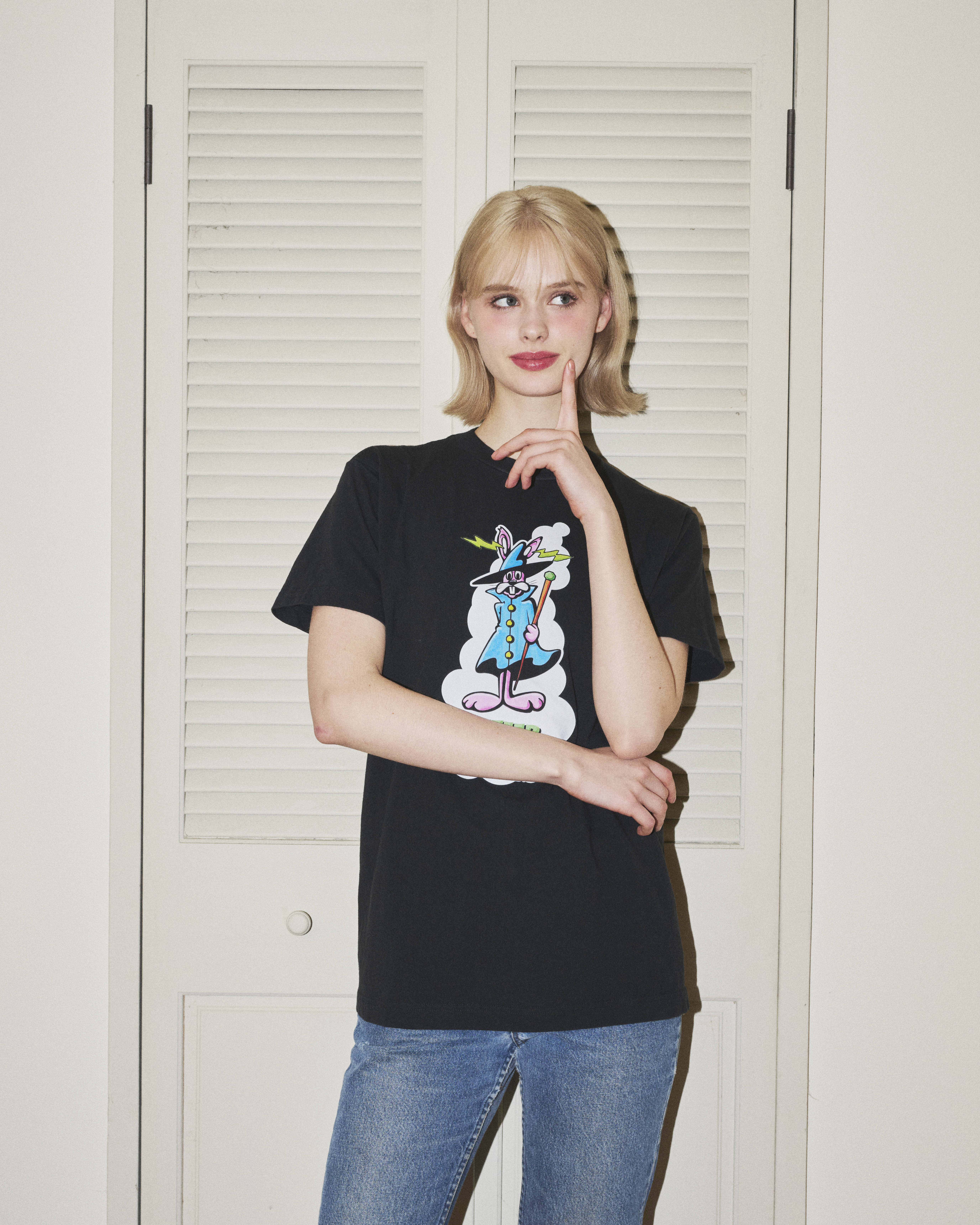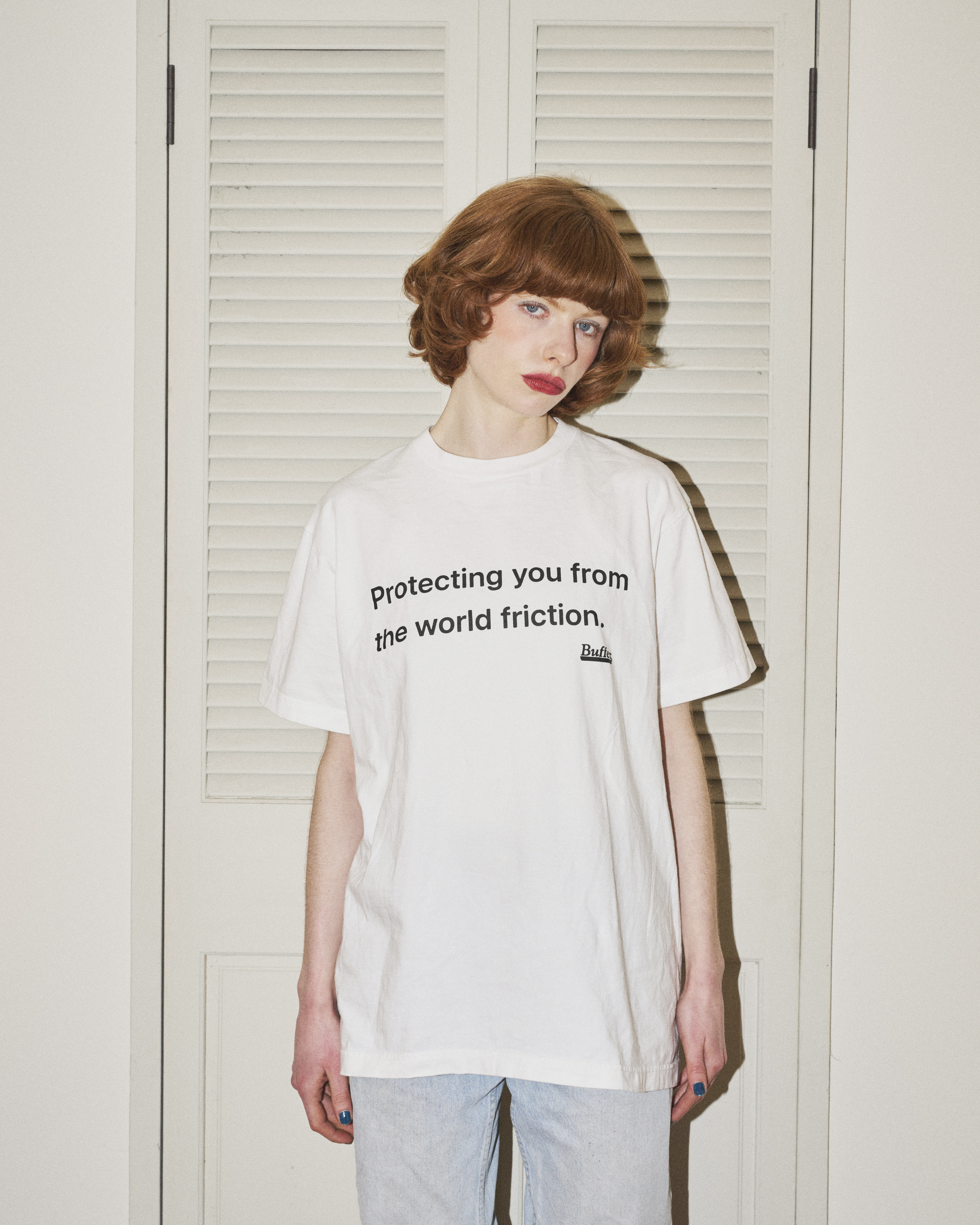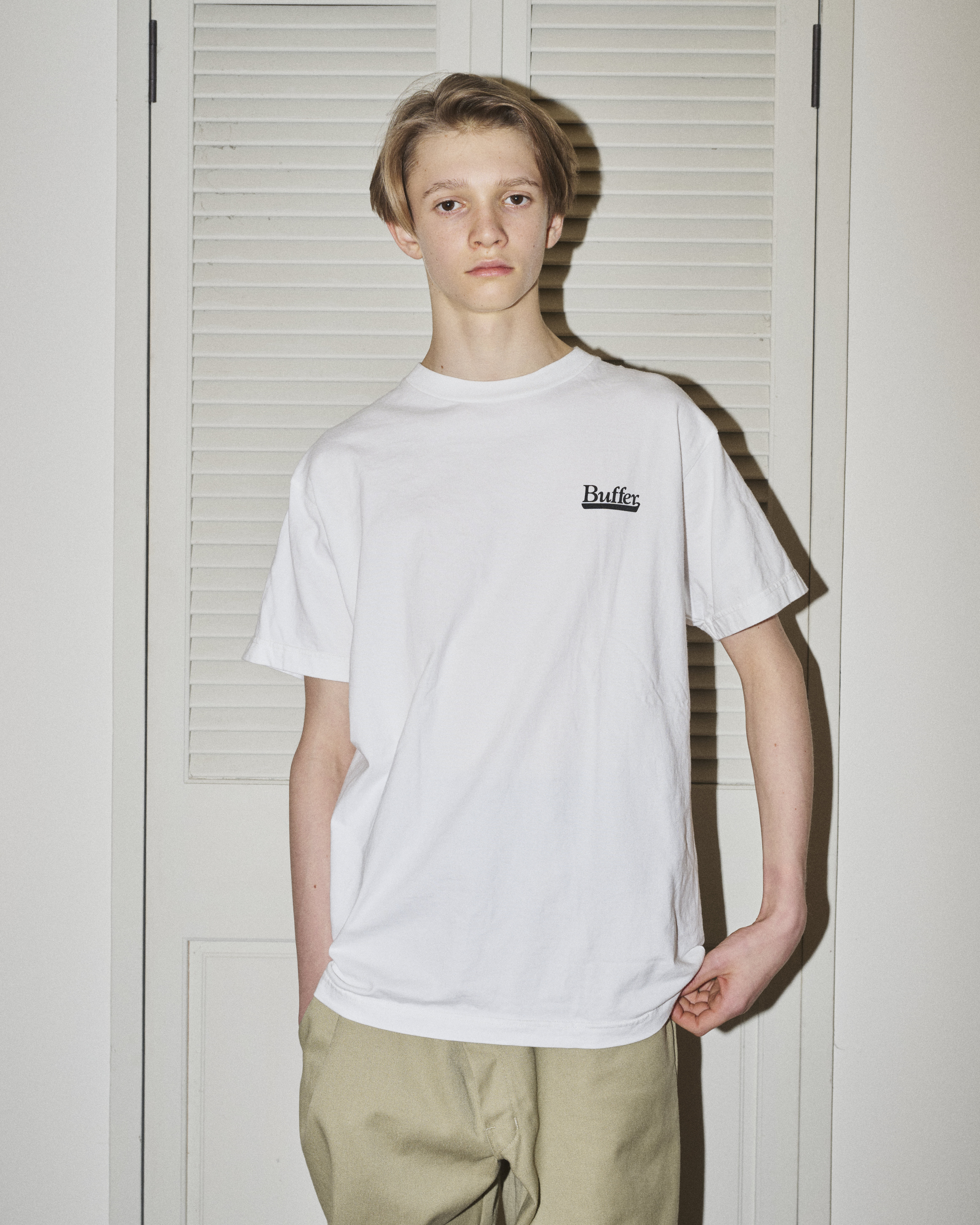 ユースファッションのスタンダードとなったボックスシルエットをあえて見直し、'80年代から'00年代くらいまでのTシャツをリファレンスに、適度なオンス感・そこそこの着丈・やや細めの身幅というバランスを追求。主張を抑えながら、誰でも、どの世代でも自然に馴染む一枚を目指した。基本カラーはホワイトとブラックの2色、素材はコットン100%。
