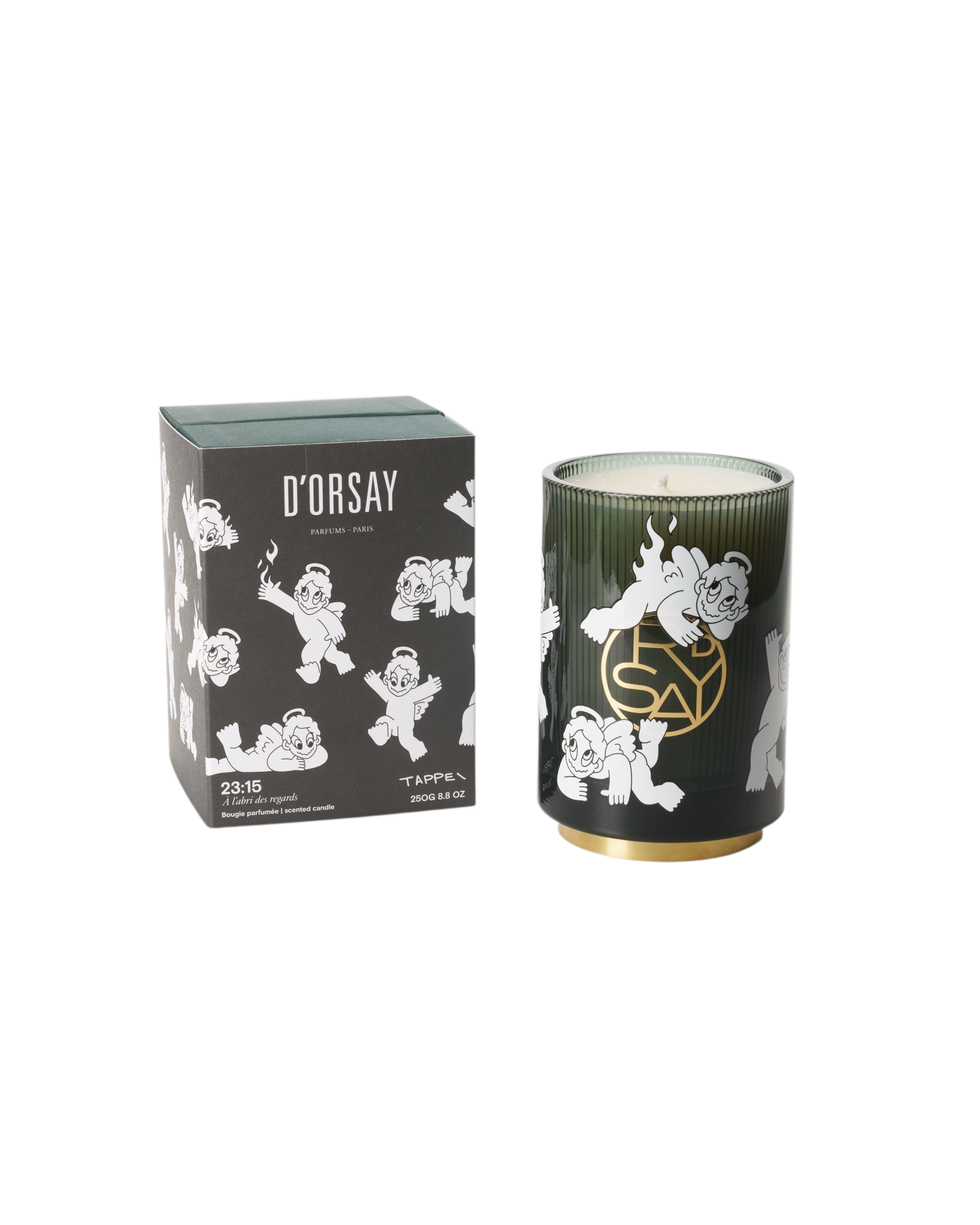 本コラボレーションでは、D’ORSAYのホームフレグランスを象徴する「時刻」をテーマにしたセンティドキャンドルの中から、TAPPEIがセレクトした「17:30」と「23:15」の2つの香りをベースに、オリジナルデザインを施した特別仕様のキャンドルを展開。