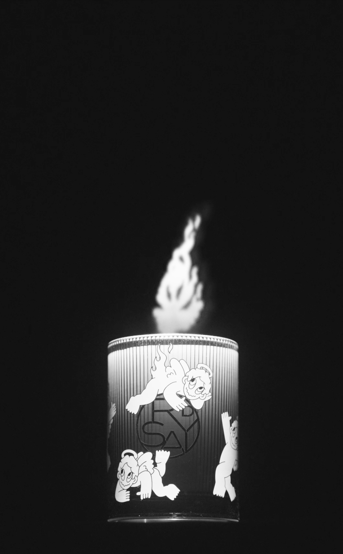 TAPPEIの代表的なモチーフである天使のキャラクターを取り入れたビジュアルは、香りと炎がもたらす静かな時間の中で生まれる感情や余韻を表現している。